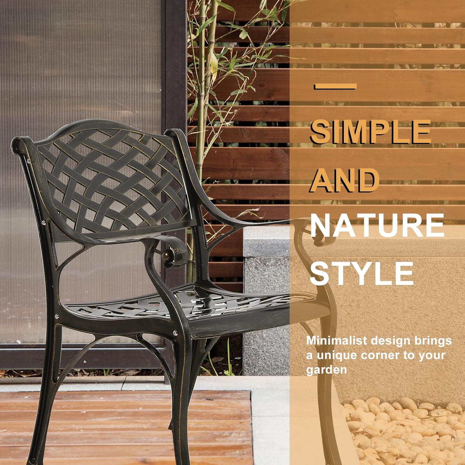 - 【Considerate Design】 - Each leg of this patio chair is equipped with adjustable levelers for non-flat surface. The curved backrest of the chair fits your back, wide seats allow you to sit comfortably, curved armrests allow you to place your arms naturally to get rid of the fatigue of the day and make your leisure time more enjoyable.