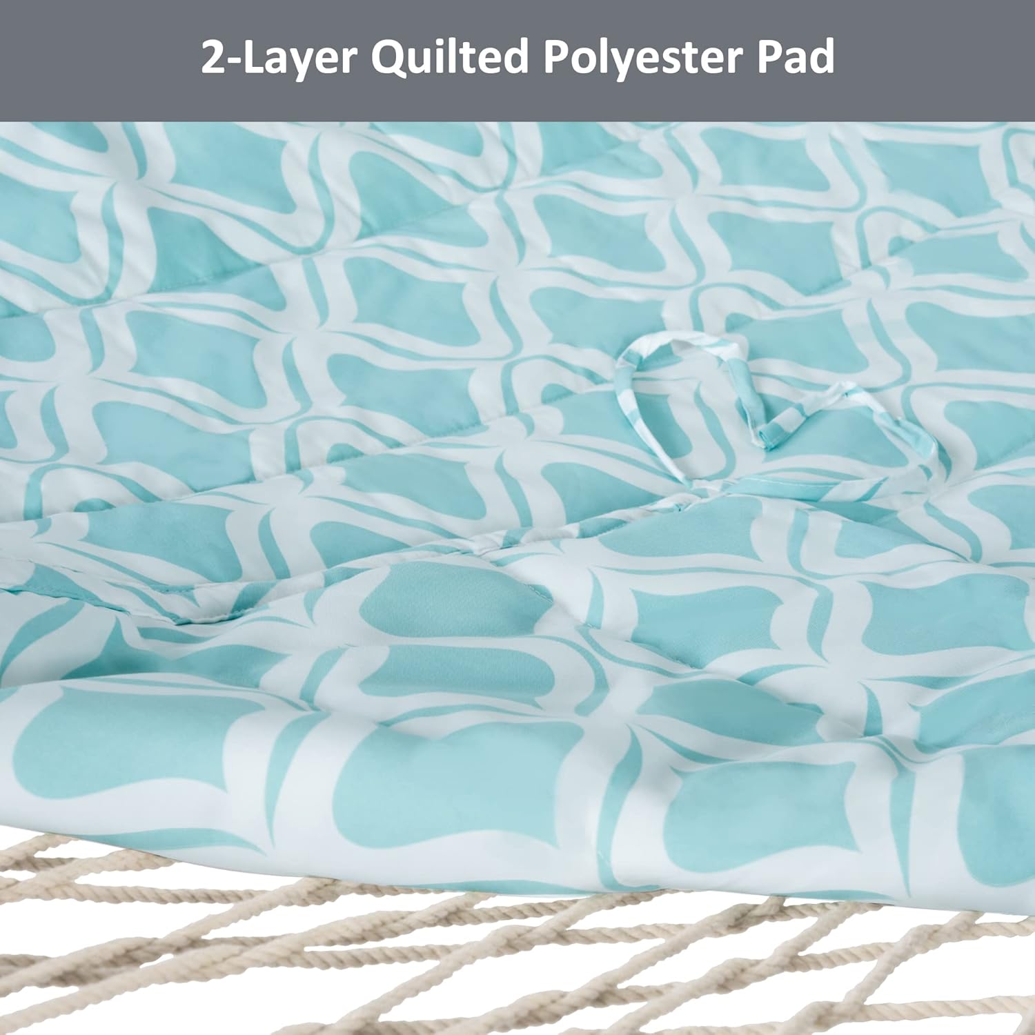 - Hardwood Spreader Bar: 52 inch hardwood spreader bars are more stylish and stable, giving you a comfy nap without the anxiety of falling down. It features countersunk spreader bar holes which reduce the friction between the rope and wood