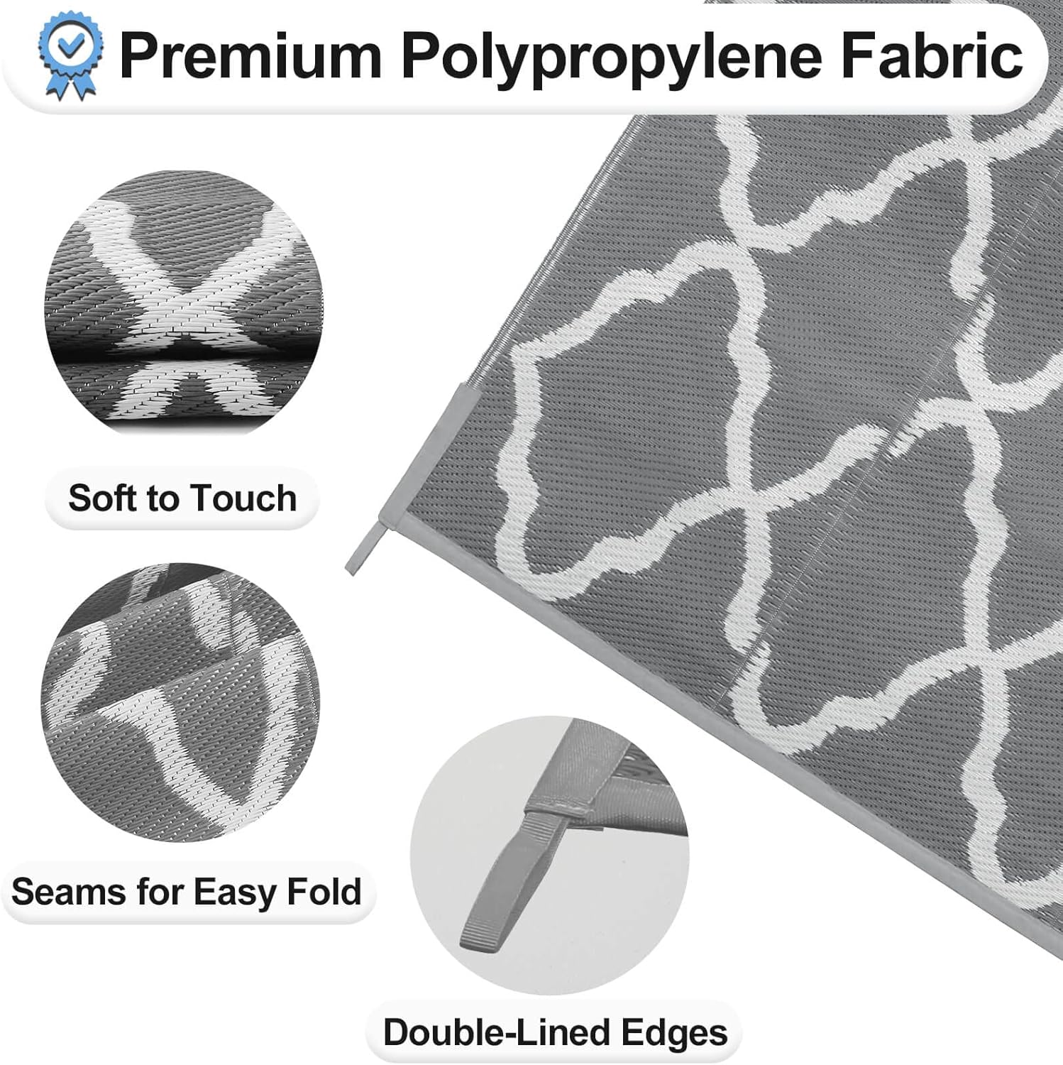 - EASY TO FOLD, STORE AND CLEAN: These plastic camping rugs with foldable lines are easy to clean, store and carry but no worries about spills or sand and dirt outside; Simply sweep up these patio rugs with soft brush or towel to remove dirt or hose down for a deeper cleaning, air dry is recommended