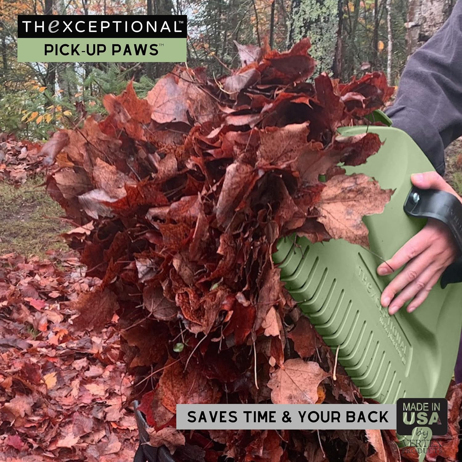 - 100% AMERICAN MADE PICK-UP PAWS by Vertex Products. Our leaf claw scoops are comfortable, durable and easy to grab with a lightweight and ergonomic design to make leaf pick up comfortable on the hands. You can grasp large amounts of leaves and neatly deposit them into a bag easily. These oversized rake hands can help in the yard, lawn or garden for spreading mulch, feeding leaf shredders or helping with pet mess clean ups.