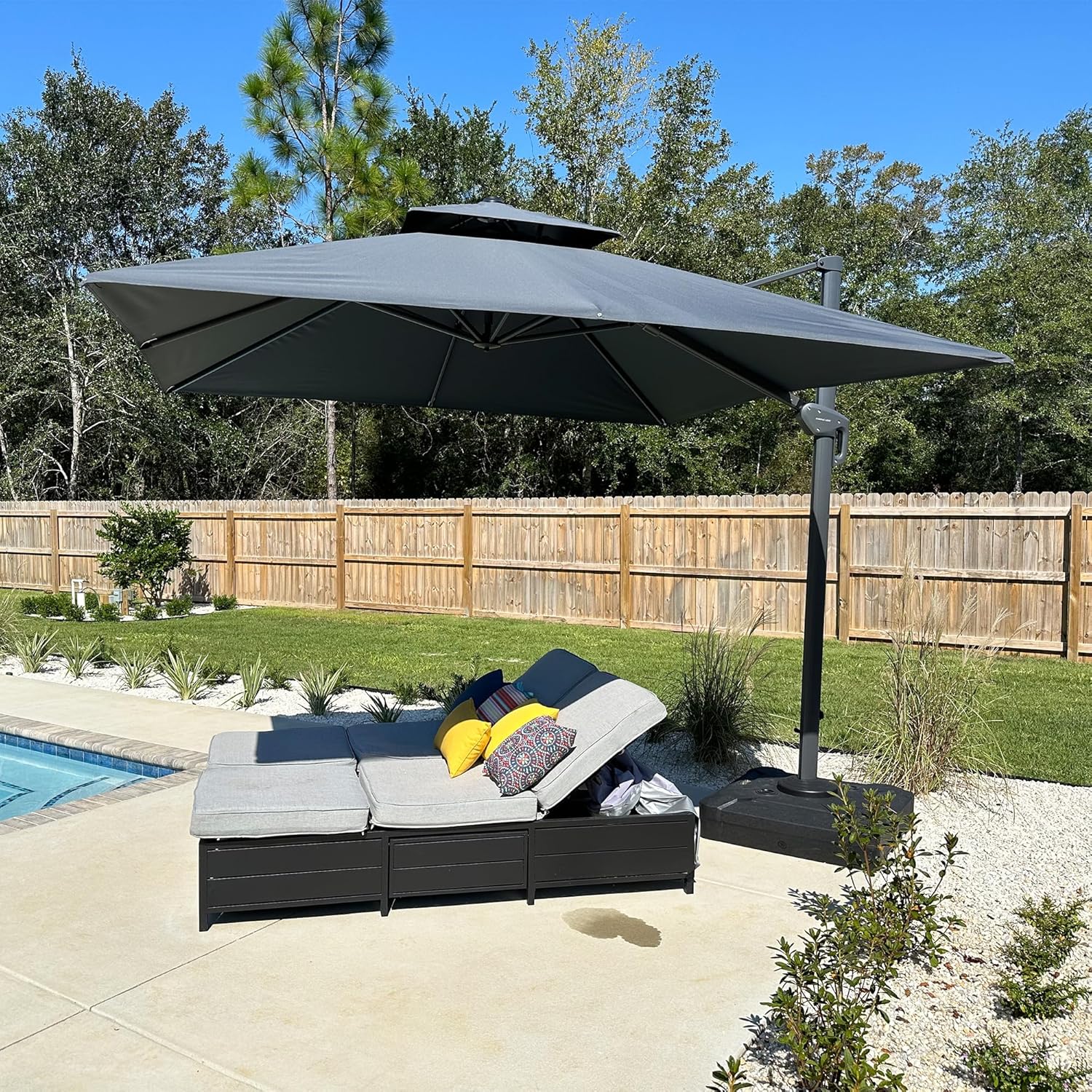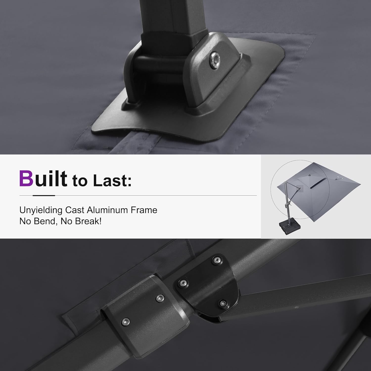 PURPLE LEAF 10FT Cantilever Outdoor Umbrellas Large Patio Umbrella Hanging Double Top Square Offset Umbrella with 360°Rotation Tilting Umbrella Outdoor Patio, Grey