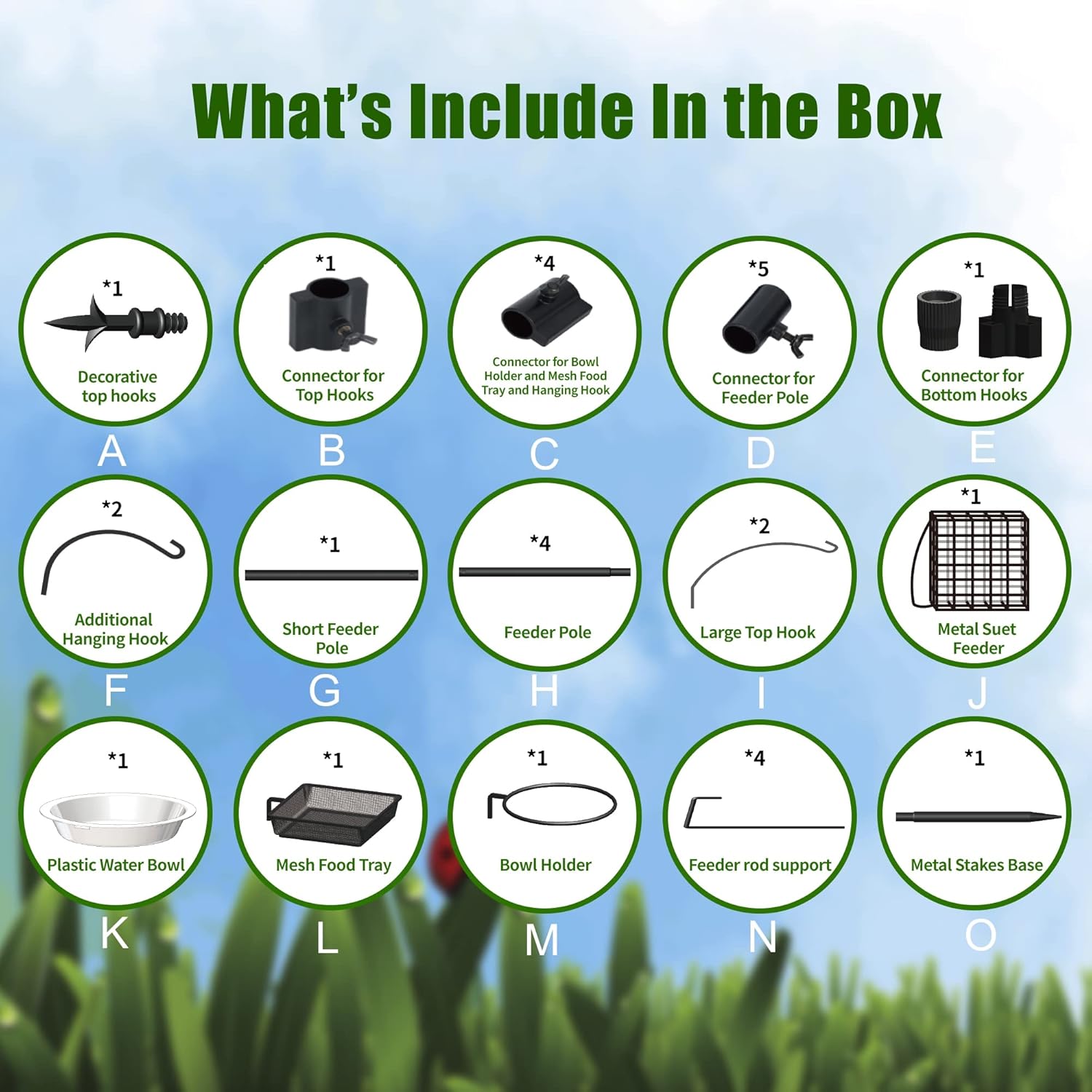 - Premium Bird Feeding Station Kit: Enjoy watching beautiful colors as wild birds drink and eat. Put it outside your home, near a window or patio, with a clear view to enjoy pleasant entertainment. Dimensions: 23 x 90 inches. (Please note, contents of feeders are NOT included).