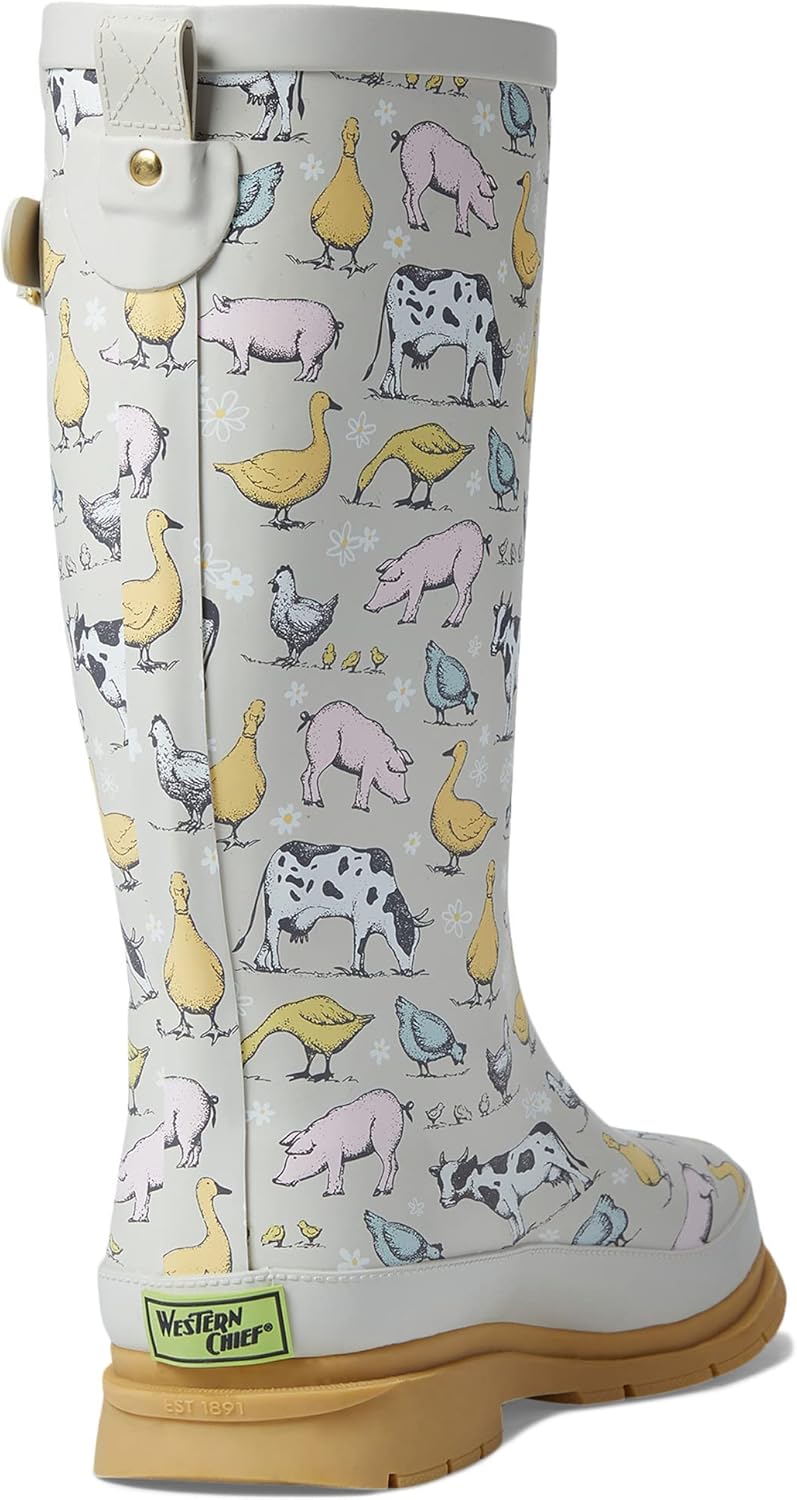 - WATERPROOF RAIN BOOT | Our Western Chief Women's Printed Tall Rain Boots are made with rubber, which is waterproof and durable. The handmade vulcanized construction prevents weak spots in seams and allows us to make our fun designs.