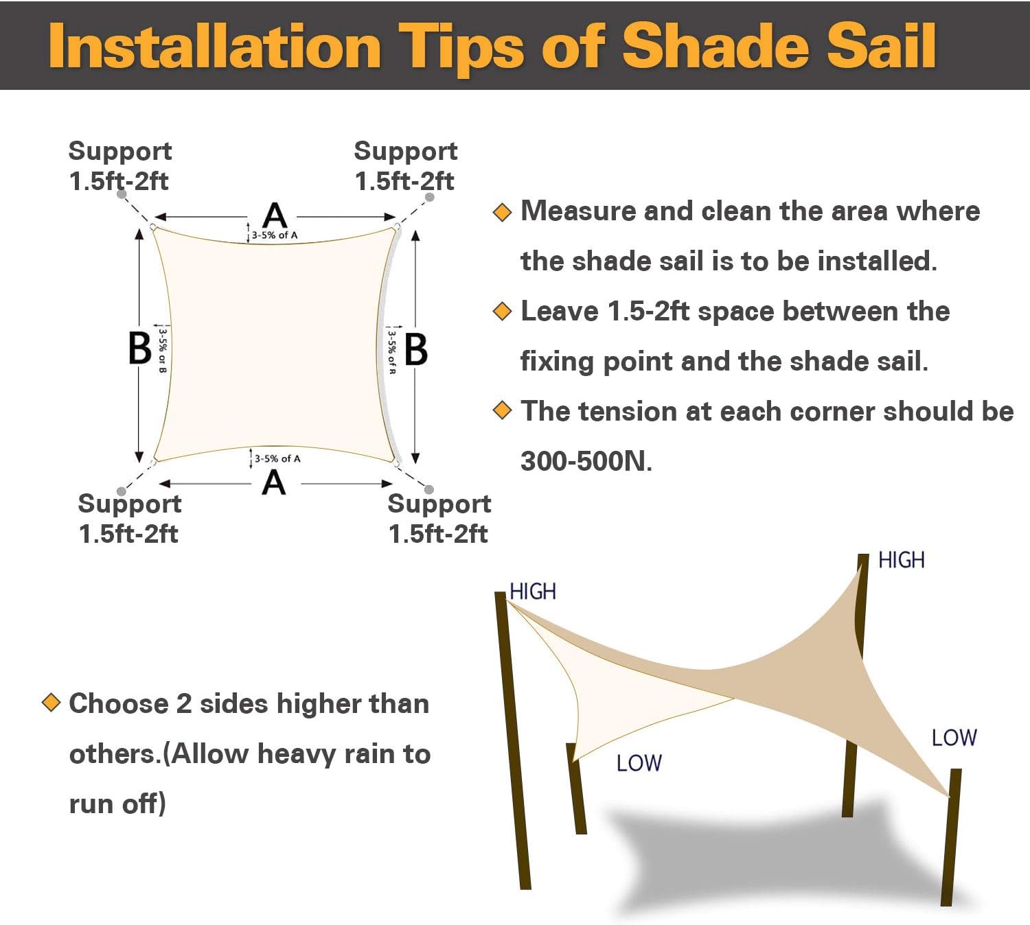 - Resistant Sun Sail: The shade sail protects your children, flowers, plants and cars safe from exposuring under the sun by blocking up to 95% UV rays. significantly reduce the temperature and UV sunlight in shaded area during summer time, ideal for patio, swimming pool, balcony, carport etc