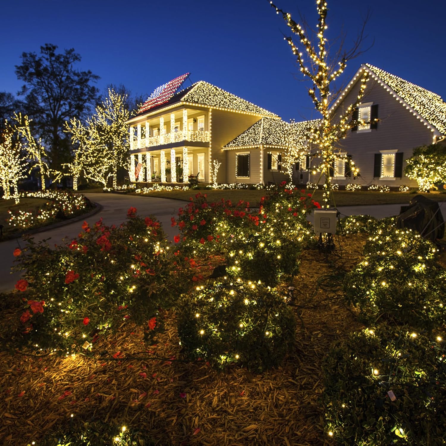 - 500 LED ChristmasDecorations: 29V low voltage special Warm White string lights, 164 FT extreme long outdoor string light enable you a large decorate space. This Christmas LED lights could bring people a happy festive ambiance during the days off.