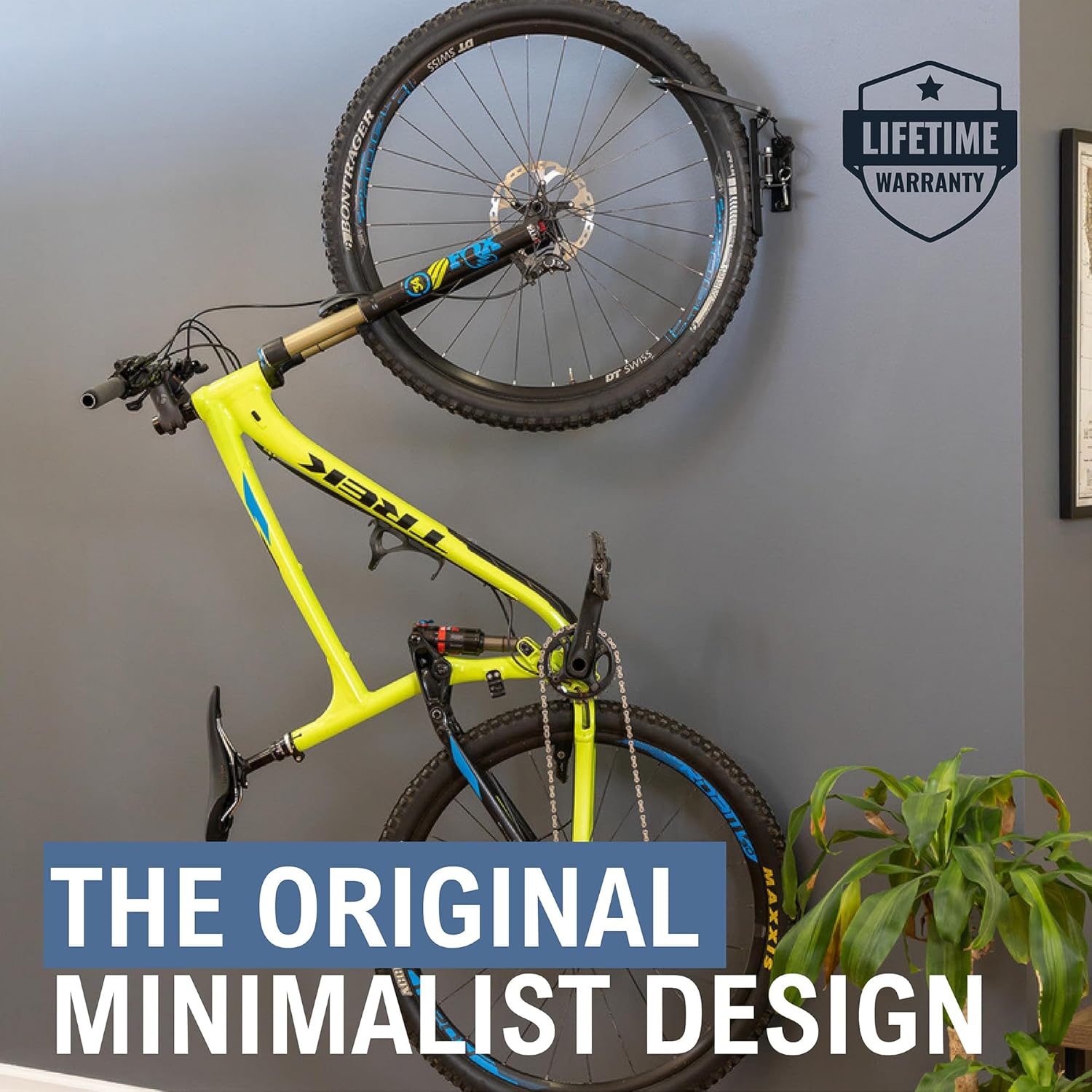 - WALL-MOUNTED BIKE STORAGE – Reclaim your garage, shed, or apartment space with this space-saving vertical bike rack. Designed to mount securely to wall studs, each rack stores one bicycle flat against the wall, making it ideal for indoor bike storage in tight spaces. Compatible with a variety of bikes including road bikes, e-bikes, folding bikes, and more. Fits tires up to 2.6" wide and up to 29" in diameter.