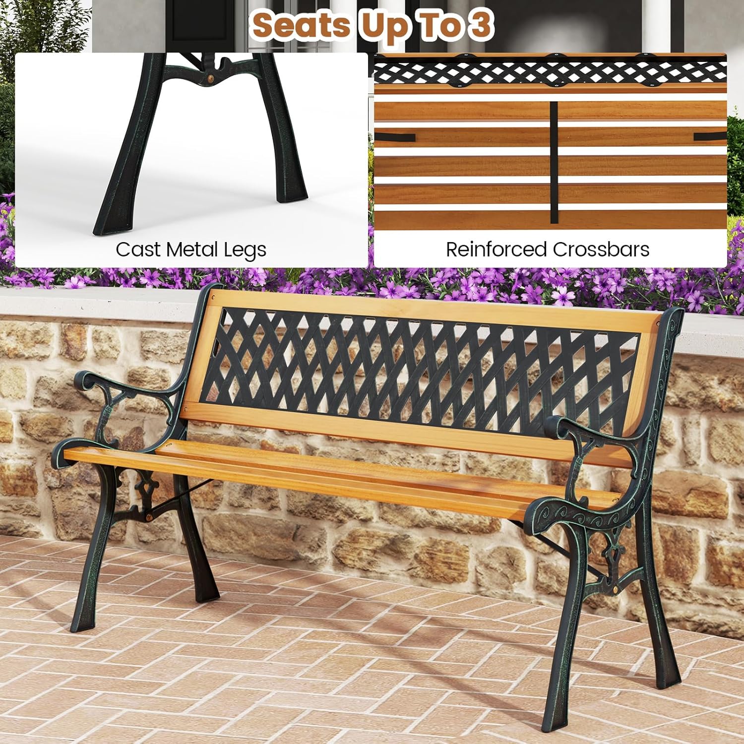 Tangkula Outdoor Garden Bench Park Bench, Patio Bench Chair with Cast Iron & Hardwood Structure, Weather Proof Porch Outdoor Furniture Loveseat, Perfect for Backyard, Deck, Lawn, Poolside