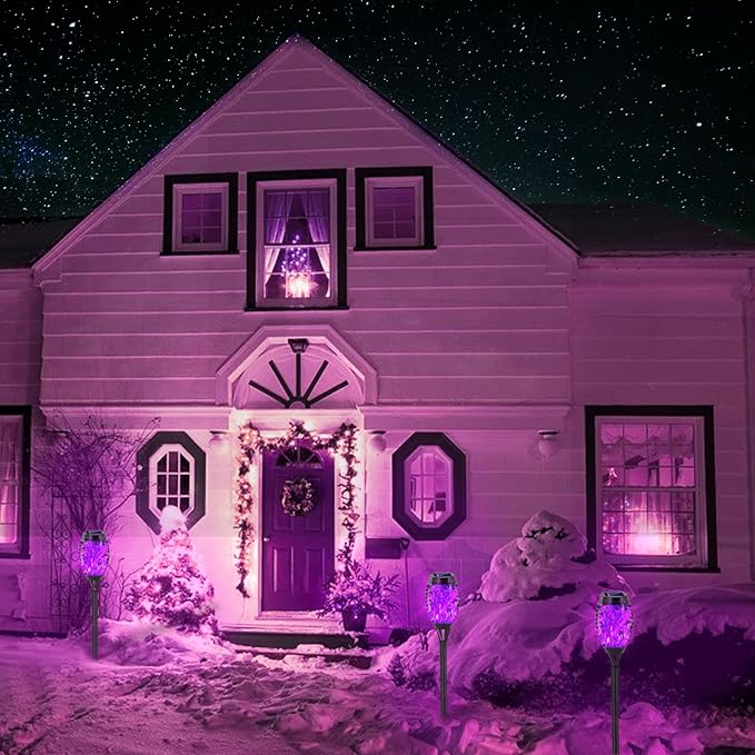 EOYIZW Solar Lights Outdoor, Halloween Decorations Purple Solar Tiki Torches for Outside Lights, 12 Pack Solar Torch Light with Flickering Flame Landscape Outdoor Lights for Yard Patio Garden