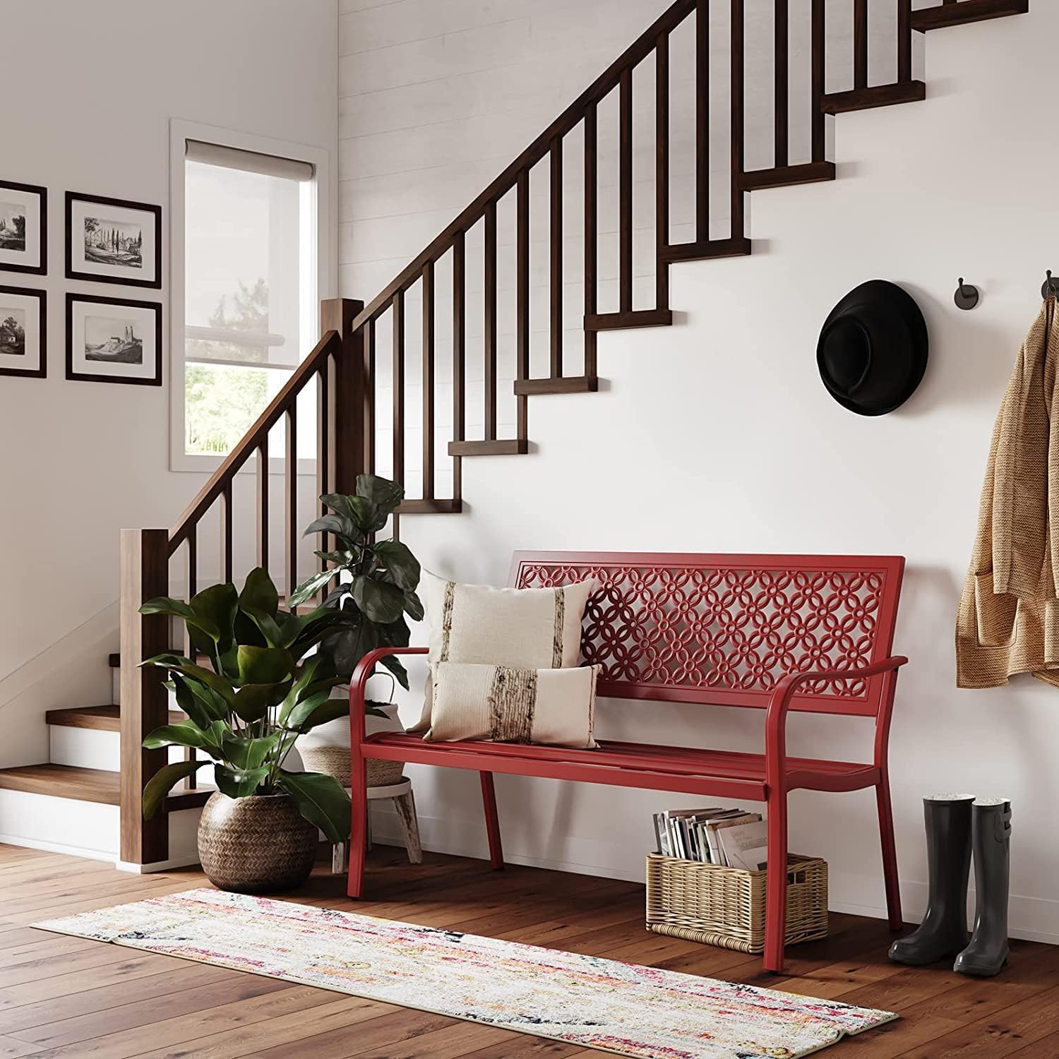 Grand patio 50" Outdoor Bench Garden Bench with Armrests Bench for Outdoors Lawn Yard Porch Red