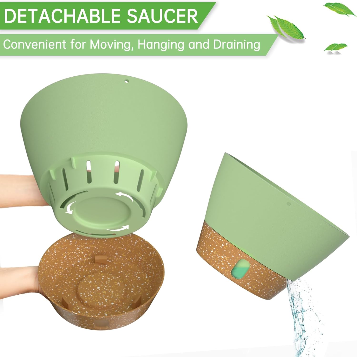 - Snap-in Tray with Visible Water Level: The tray can be removed for easy cleaning of the flower pot. The self-watering flower pot with drainage holes can drain excess water to the tray, so the tray will store an amount of water for the plant(Longer than 7 days). And you can water the plants by looking at the water level.