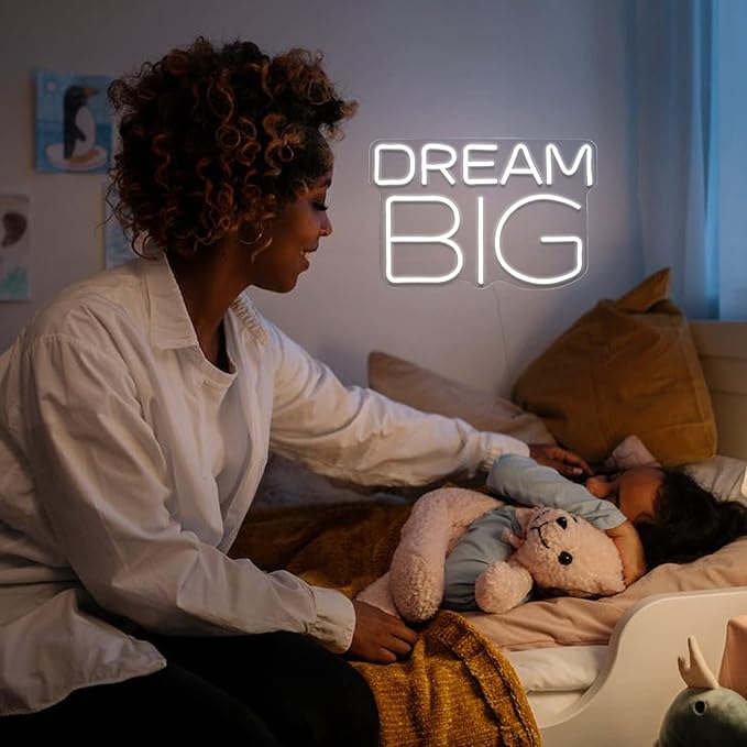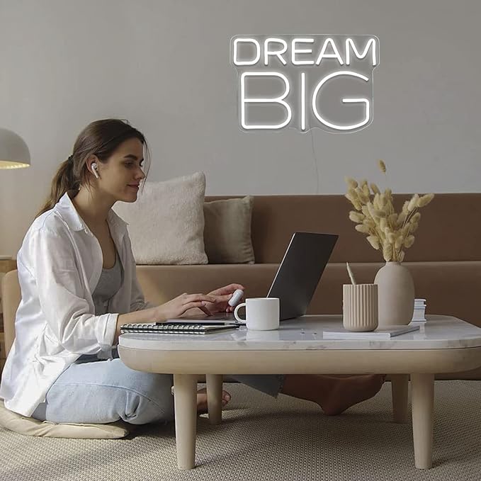 Dream-Big Neon Sign For Wall Decor In Bedroom or Bar,Dream Led Neon Sign For Birthday Gifts,Festivals Decoration,Party Sign Hang on Wall 15 * 9.8inches