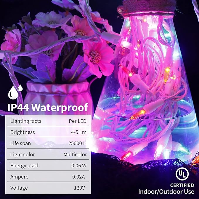 - 【Premium and Safe】: UL certified christmas lights to secure the safety of you and your family, mini LED string lights energy conservation and environmental protection, light beautiful and soft, stable without glare, IP44 waterproof grade, can be used indoors and outdoors decorations