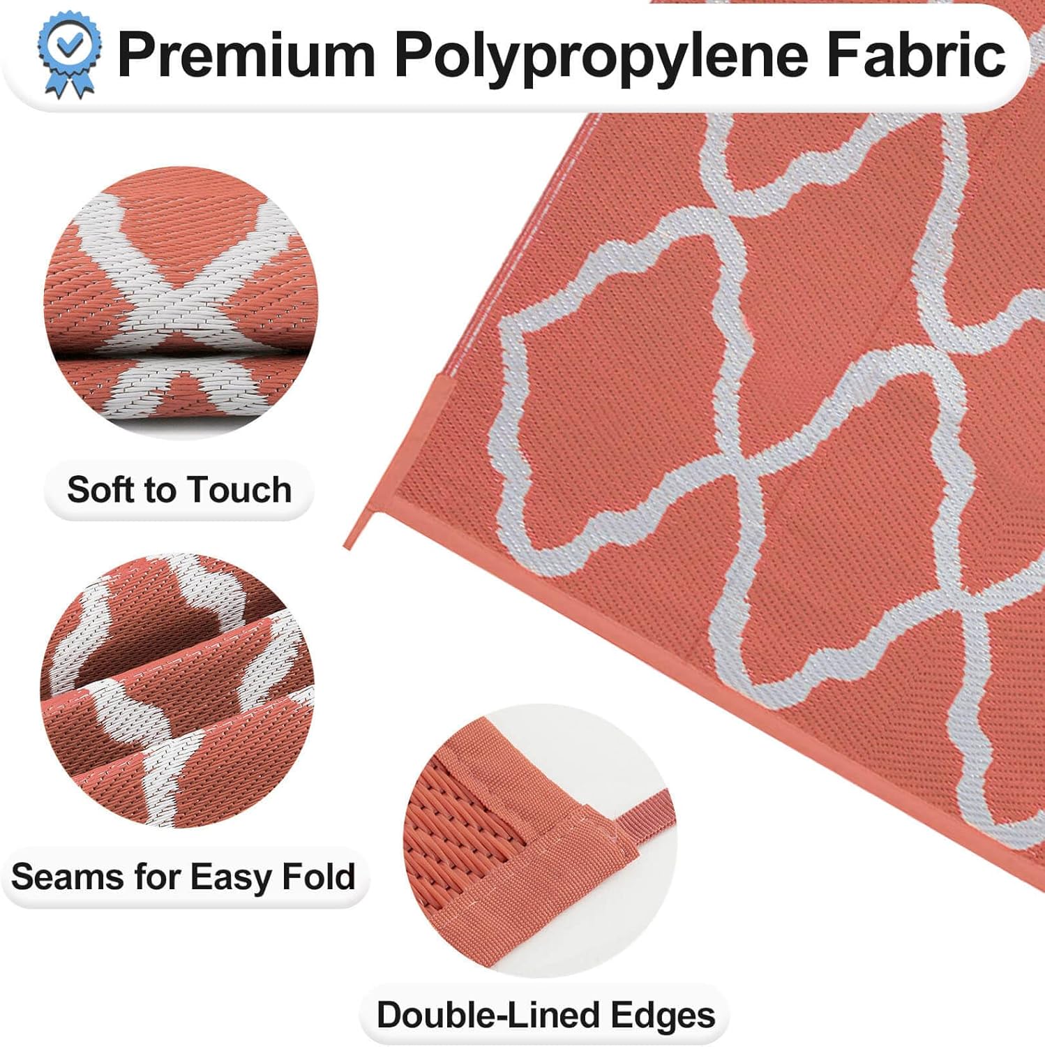 - PRACTICAL REVERSIBLE PATIO RUGS: Our patio mats give you two looks in one with its reversible design, automatically extending the amount of wear and tear the rugs can withstand and enable you to refresh the look of your space with one quick flip