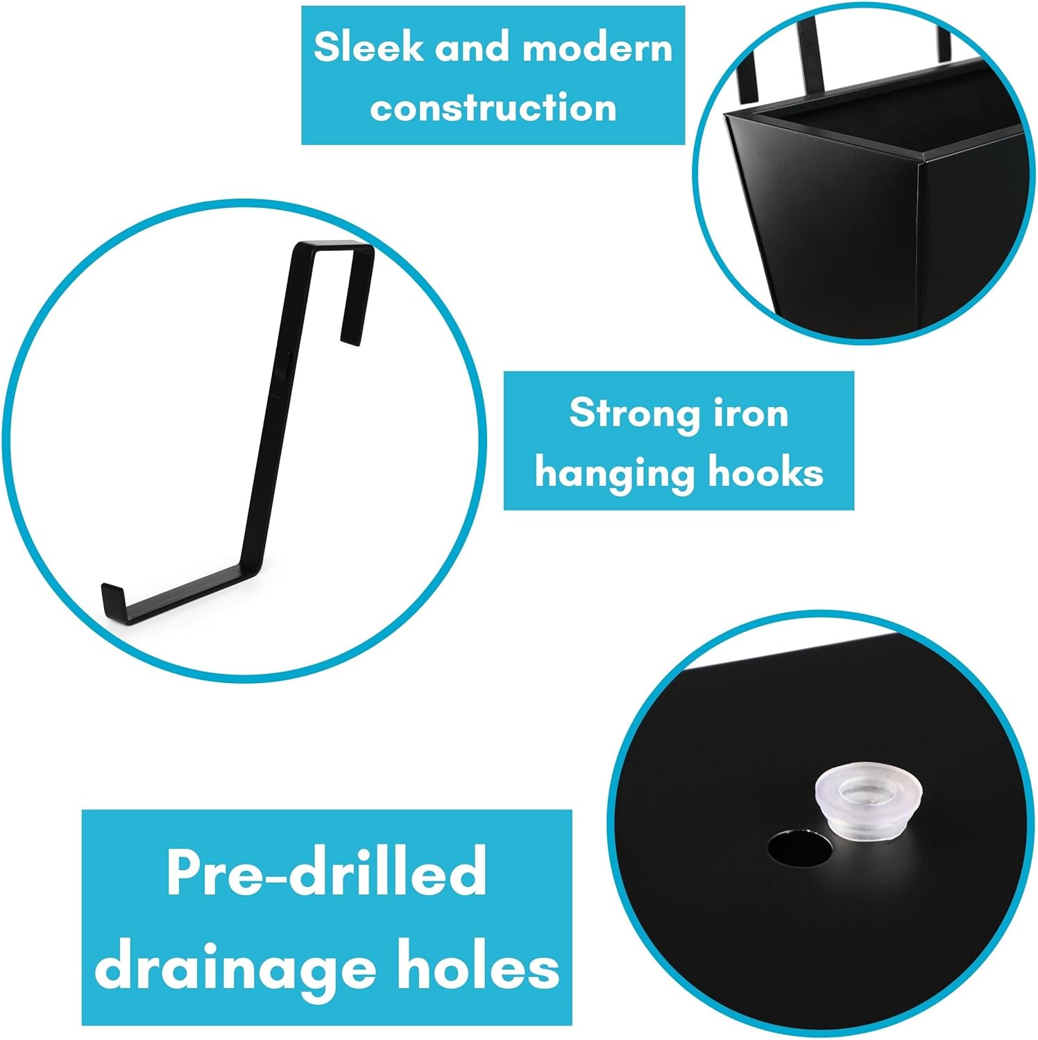 - DURABLE MATERIALS FOR LONG-LASTING OUTDOOR USE: Crafted from high-quality iron, this hanging planter features a sleek black finish that resists rust and wear, making it perfect for outdoor use. The adjustable holder design allows for secure placement on railings, fences, or banisters, while the open structure promotes healthy plant growth.