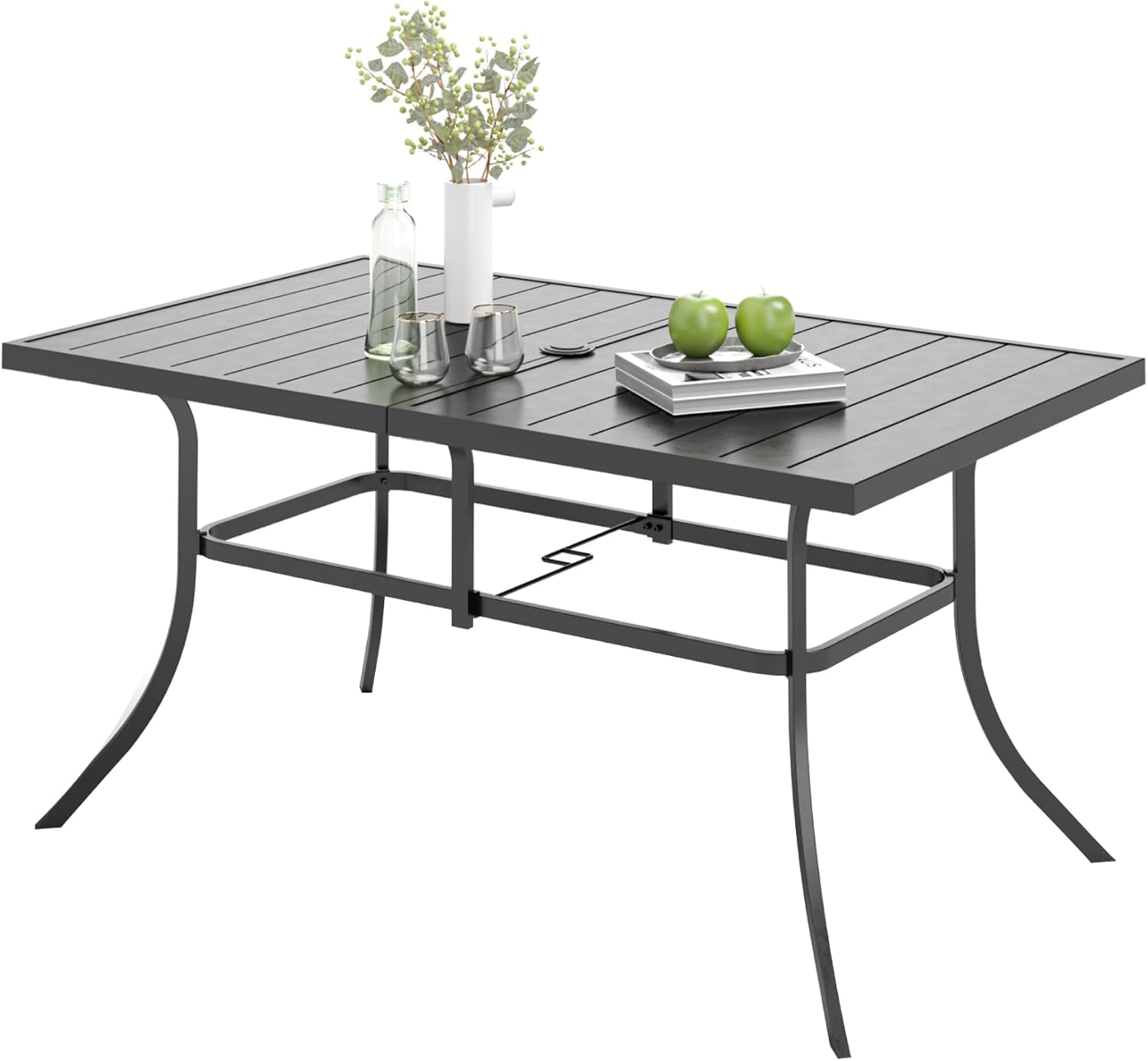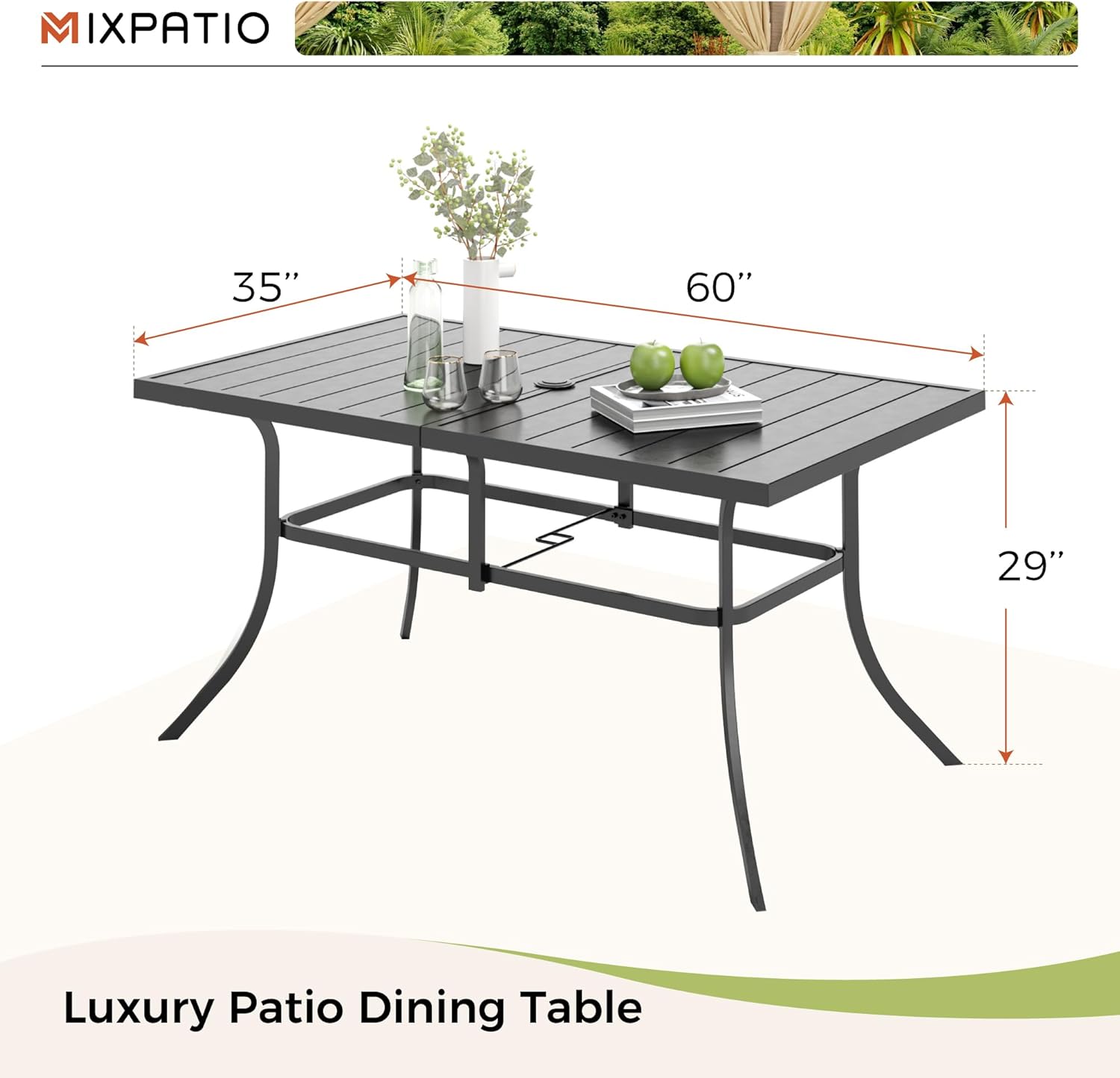 Outdoor Patio Dining Table for 6, 60" x 35" Rectangular Metal Patio Dining Table with Umbrella Hole for Garden, Backyard and Porch