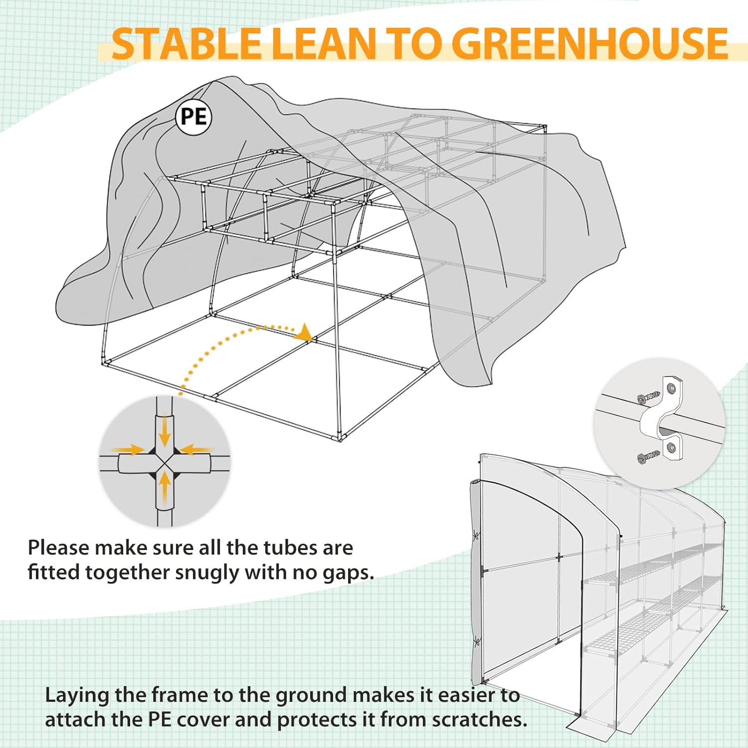 - WALL SUPPORT REQUIRED: Designed as a lean-to structure, this greenhouse must be installed against a solid, stable wall to ensure safety and durability, especially in windy or harsh weather conditions