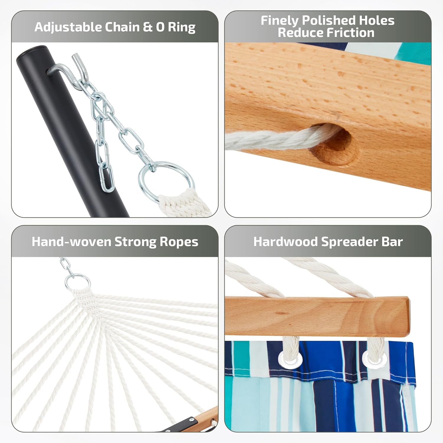 Two Person Hammock with Stand Heavy Duty, Outdoor Patio Hammock with Portable Steel Stand, Large Double Hammocks,480lbs Capacity.(Blue Stripes)