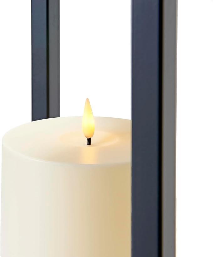 - CLASSIC LANTERN - This traditional style black metal lantern features our most realistic outdoor LED candle. | Dimensions: 6" L x 6" W x 13" H.