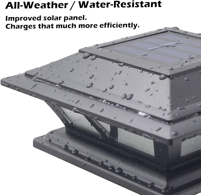 - 【Applicable Size】Our solar post cap lights are equipped with 3 different sizes of bases, which are compatible with 4x4, 5x5, 6x6 inch wooden posts. This makes it a versatile option for homeowners expecting to put a cap light on multiple pillars, it is perfect for posts, decks, patios, fences. You may also choose to mount it on outdoor tables and other flat surfaces.