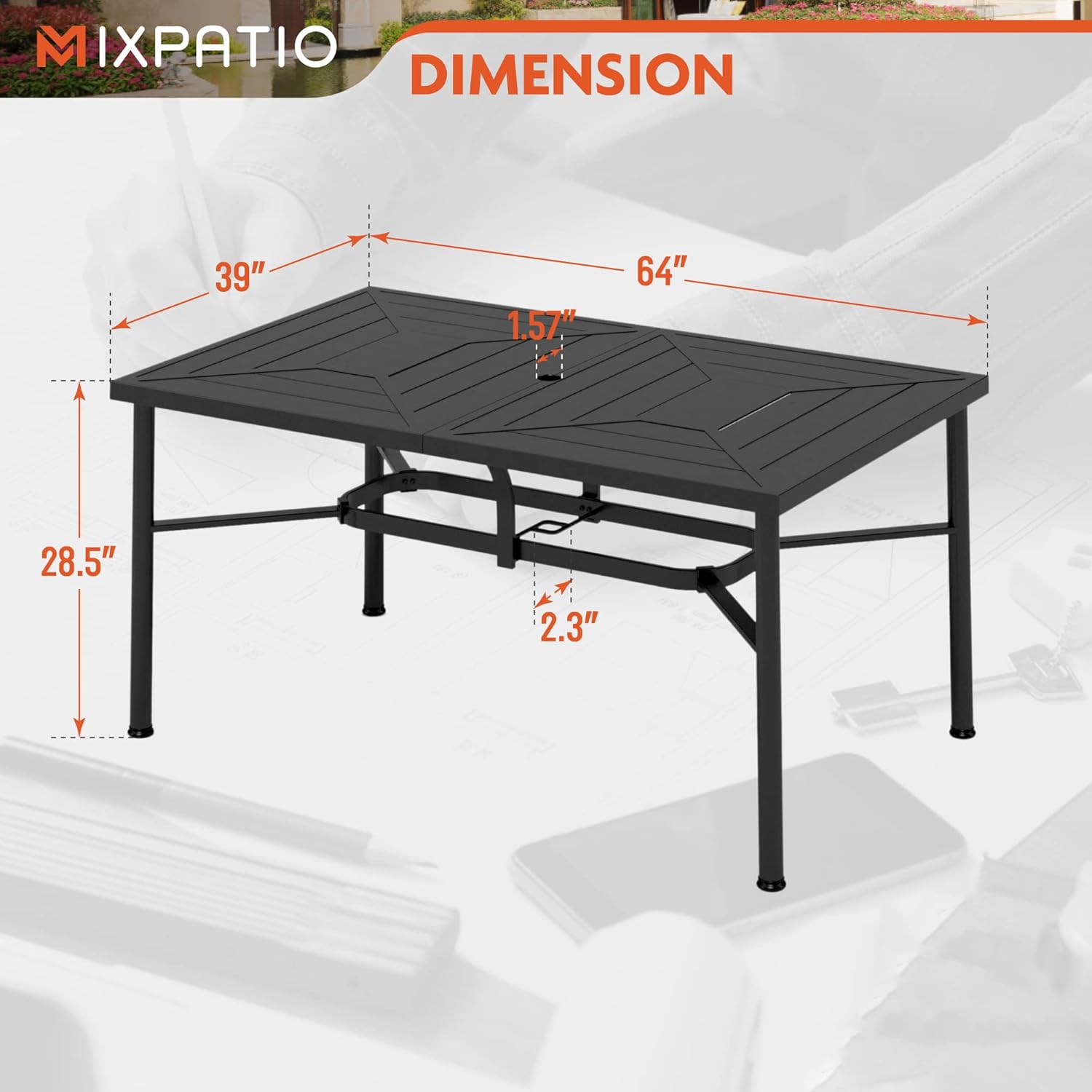 Outdoor Patio Dining Table for 6, 64" x 39" Rectangular Metal Patio Dining Table with Umbrella Hole for Garden, Backyard and Porch