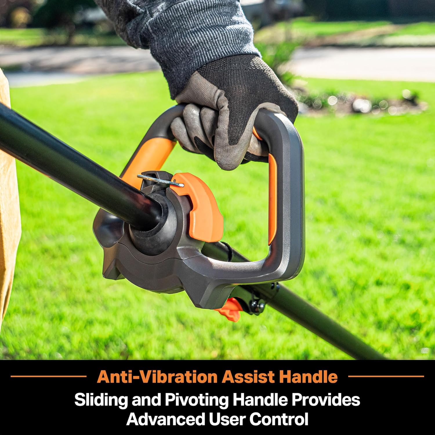- *ANTI-VIBRATION ASSIST HANDLE: Adjustable with large comfort grips slides forward and back with 360° rotation for maximum user comfort