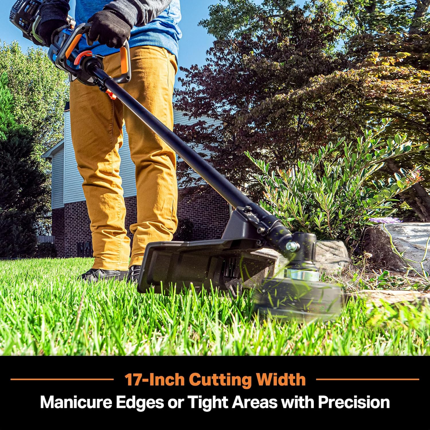 - *DUAL-LINE BUMP FEED: Trimmer head loaded with 0. 095" line for 17” cutting width