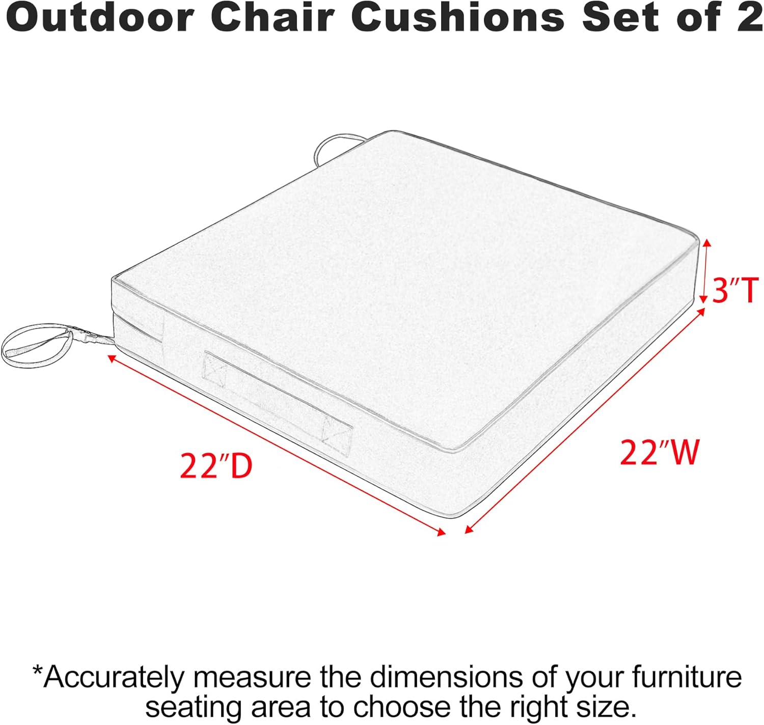 - Size Selection - Including 2 outdoor chair cushions measuring 22” W x 22” D x 3” T ( The size description is only for the cushion size, accurately measuring the dimensions of your furniture's seating area before purchasing, make sure the cushion size fits your furniture ).