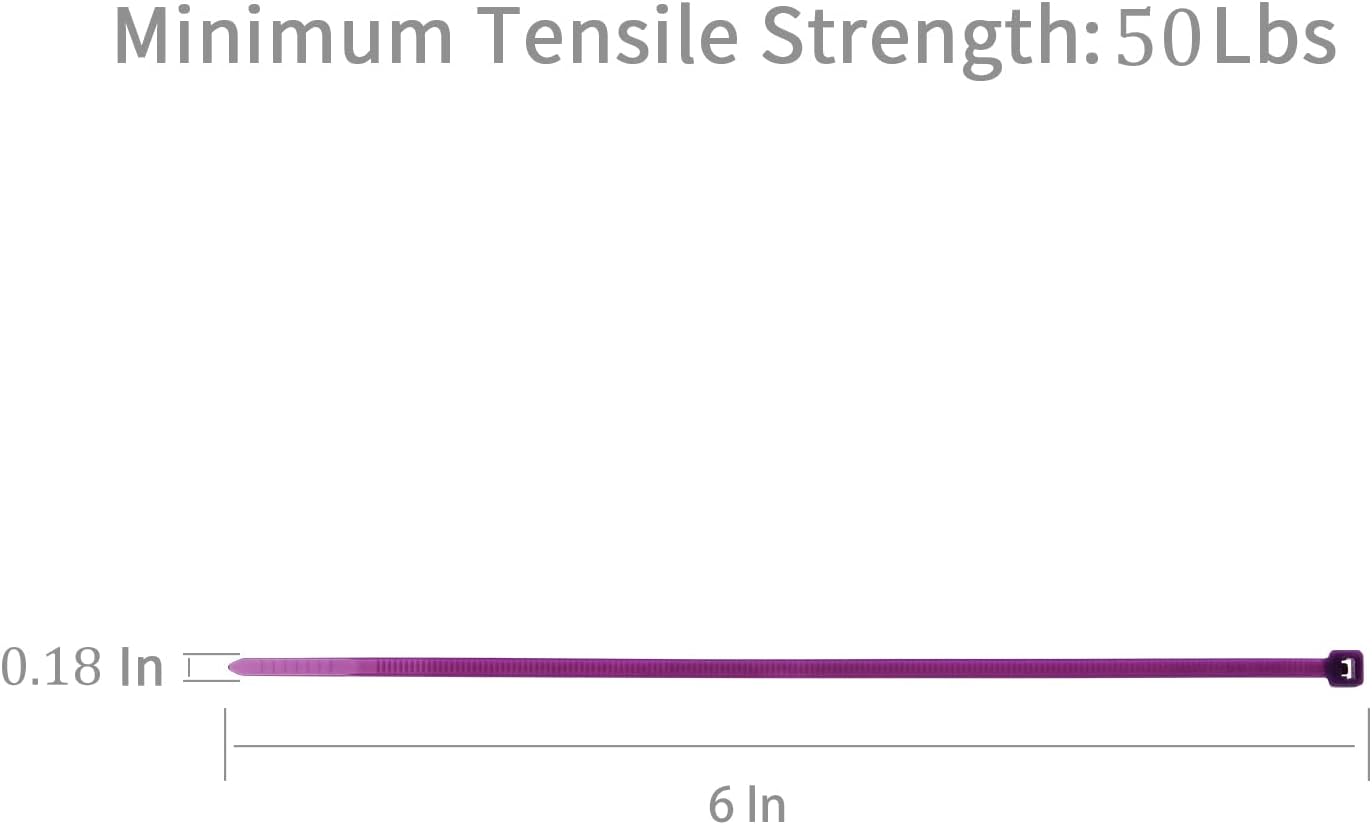 XINGO 100PCS Purple 6 Inch Cable Ties, Heavy Duty Nylon 66, 50 Pound Tensile Strength, Self-Locking, Indoor/Outdoor