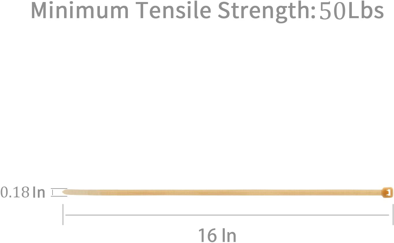 XINGO 100PCS Cable Zip Ties Heavy Duty, Premium Nylon Plastic Wire Ties with 50 Pounds Tensile Strength, Self-Locking Black Nylon Zip Ties for Indoor and Outdoor (16 inch, Gold)