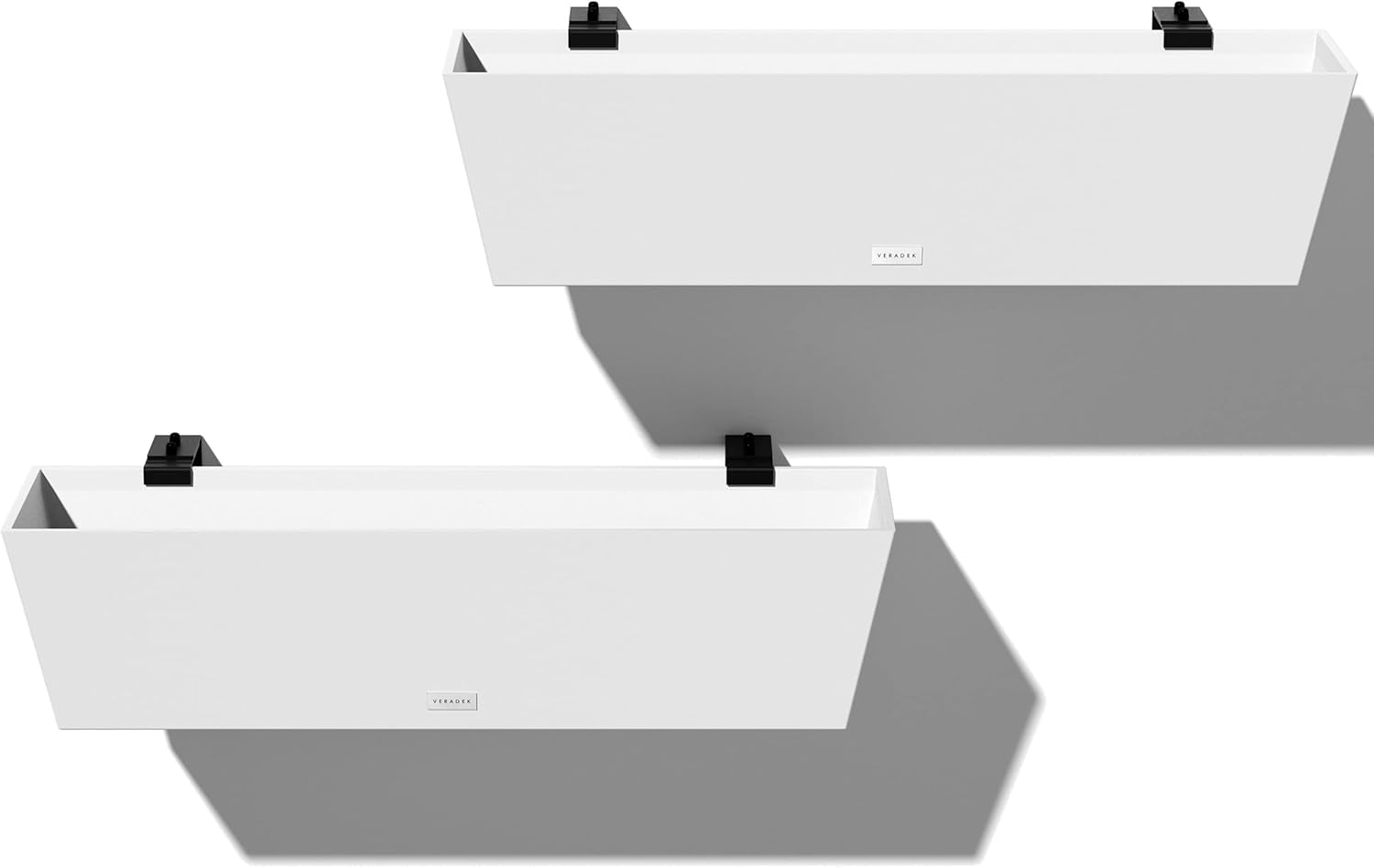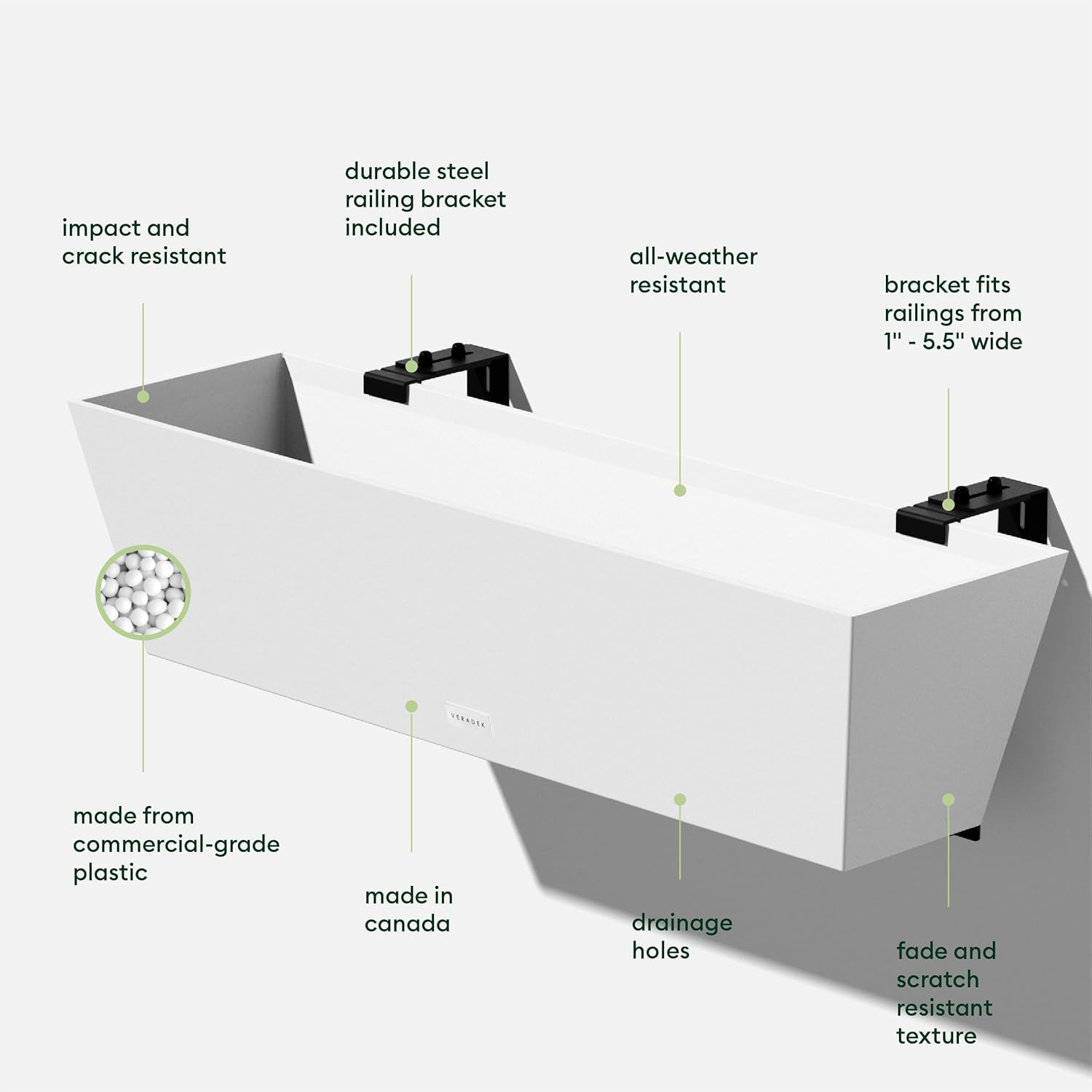 Veradek Pure Series Railing Planter - Plastic Hanging Planter for Outdoor Balcony/Fence | Durable All-Weather Use with Adjustable Brackets | Modern Décor for Flowers, Succulents, Hanging Plants
