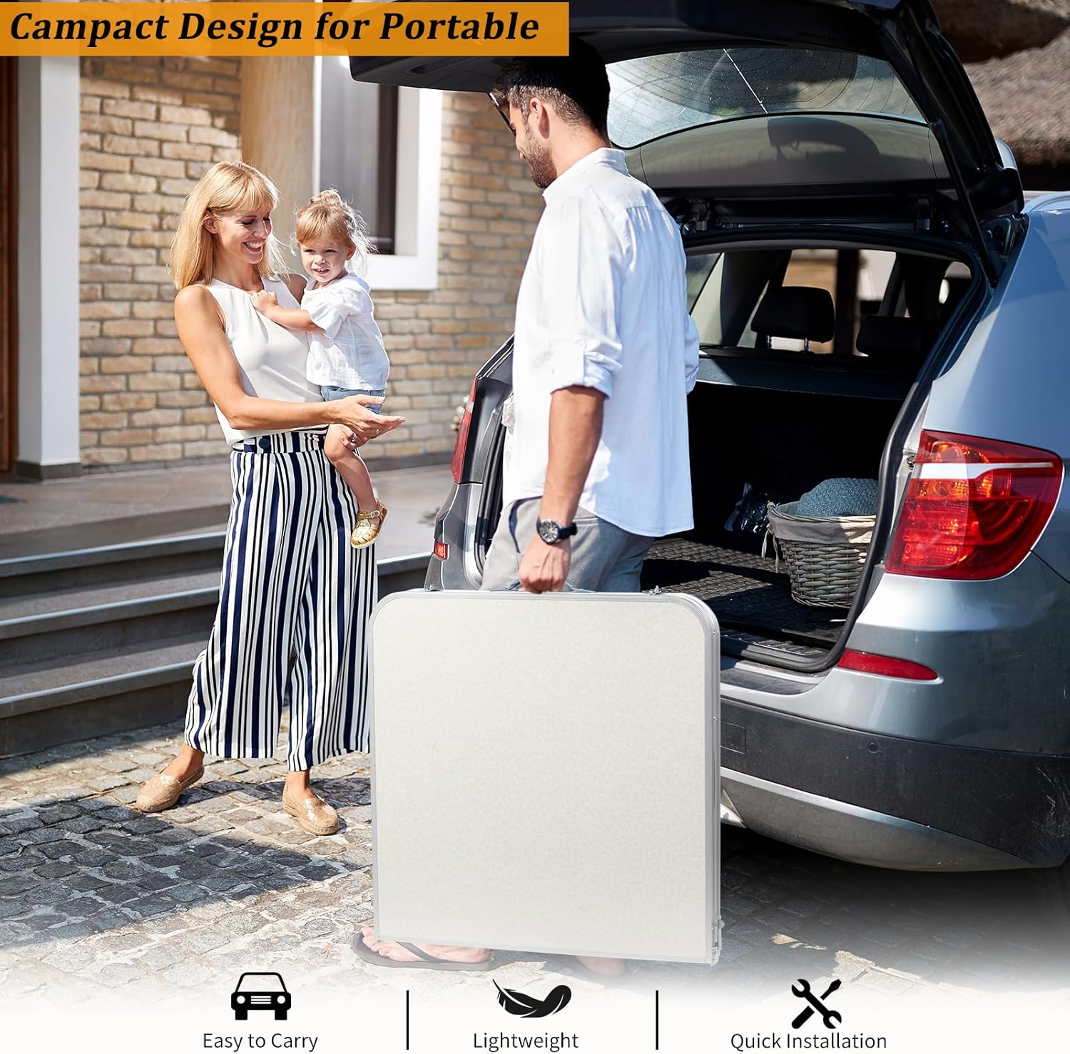 Outvita 4ft Portable Folding Camping Table, Outdoor Waterproof Adjustable Height Table, Aluminum Lightweight Suitcase Foldable Table for Picnic BBQ Beach Dining