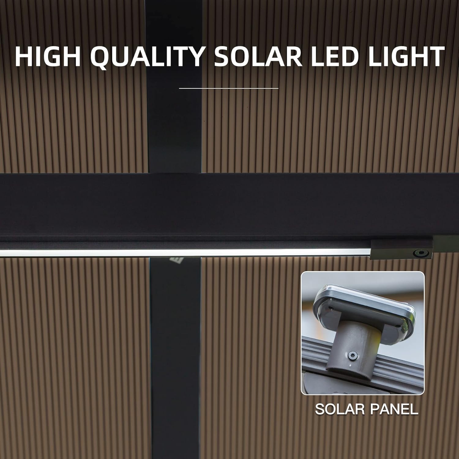 - [High Quality Solar LED Light] The outdoor swing with canopy equipped with solar LED light,which is easy to use, energy-saving and electricity-saving. It is powered by solar energy. The solar panels are located on the top of the canopy. It absorbs solar energy during the day, and you can turn on the lights at night, and then have dinner or join a night party with family and friends.