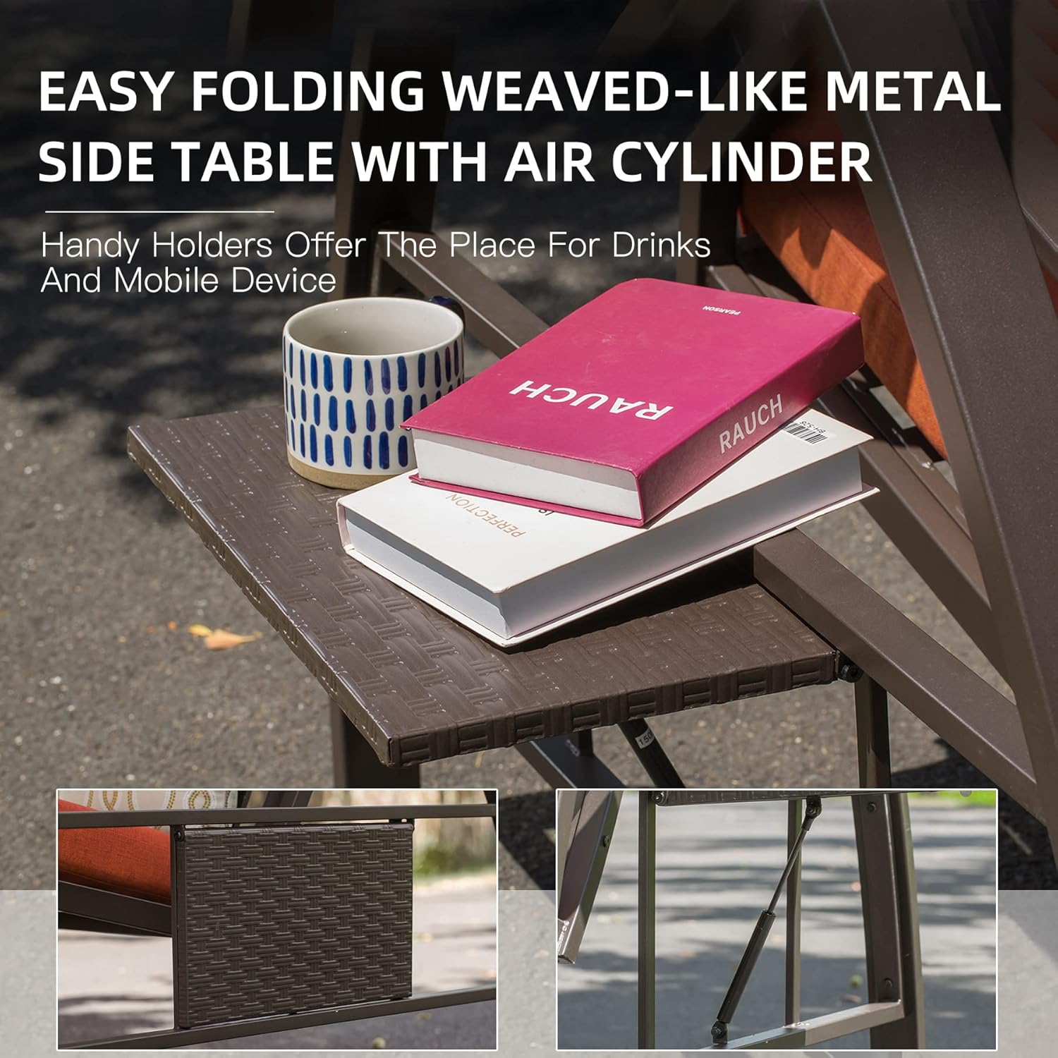 - [Foldable Air Cylinder Metal Side Table] The outdoor swing with the two side cup holders bring the perfect addition when you enjoy the outdoor entertaining.