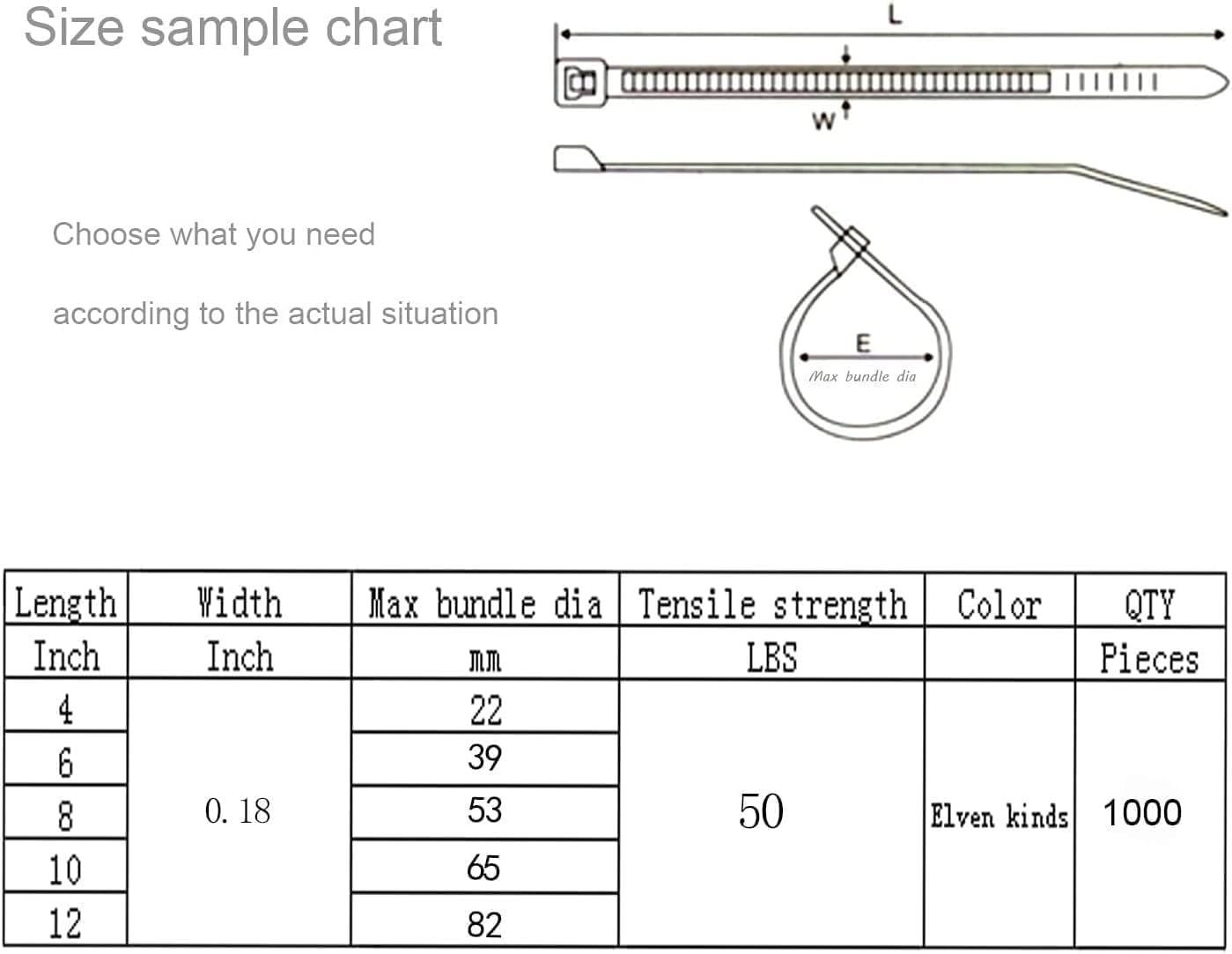 - ★【Great Design】Self-locking fastener design, sturdy and durable, easy to operate. The width of our cable tie is 0.18 inch/4.8 mm, which makes the cable tie stronger than the same size cable tie on the market and tensile strength could handles most purpose of binding in life.