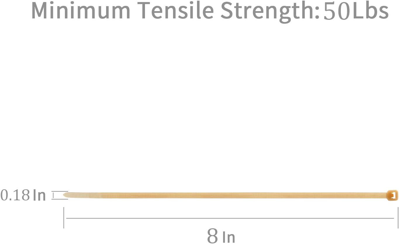 XINGO 1000 PCS Gold Zip Ties 8 Inch, 60 LBS Tensile Strength, Self-Locking Nylon Plastic Nylon PA66 Wire Ties for Indoor and Outdoor Use