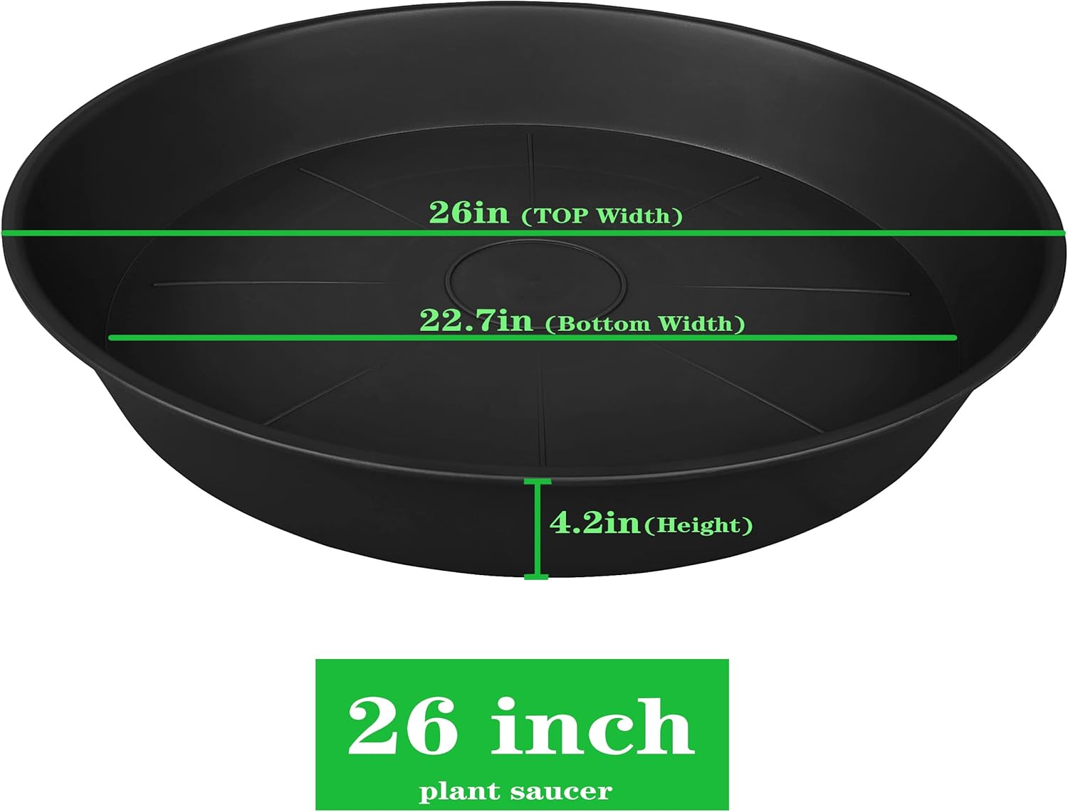 - 【PlANT SAUCER VLUE】Bleuhome plant saucer 26 inch, 3 packs black plant saucers, The tray size of each Flower pot trays is 26" at the top and 22.7" from bottom and it is 4.2" deep, suitable for planters with bottom diameter less than 26 inches.Plant Trays for Planter 21"/22"/23"/24"/25"/26"/27".