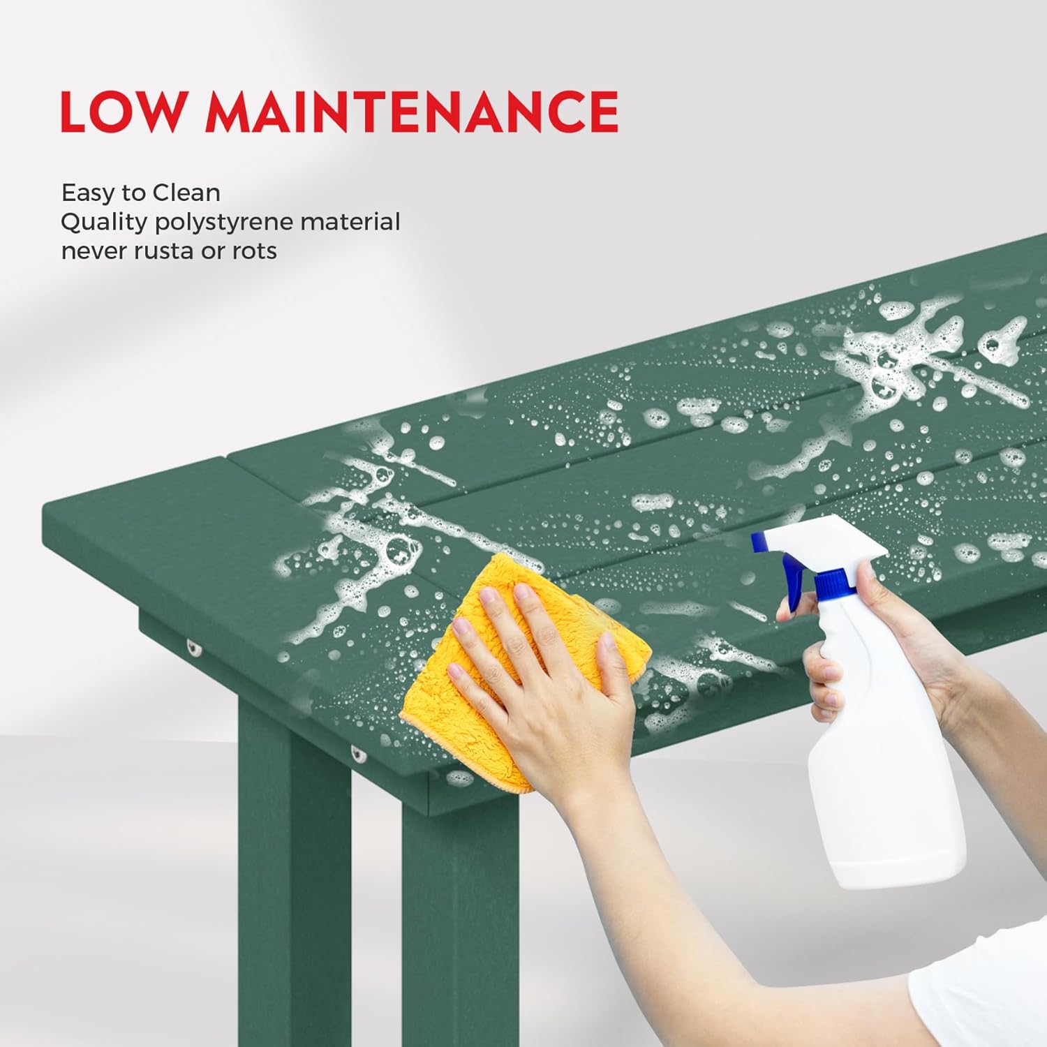 - Easy to Clean - Easily clean this bench with just soap, water, and a soft-bristle brush or sanding sponge, ensuring a pristine look.