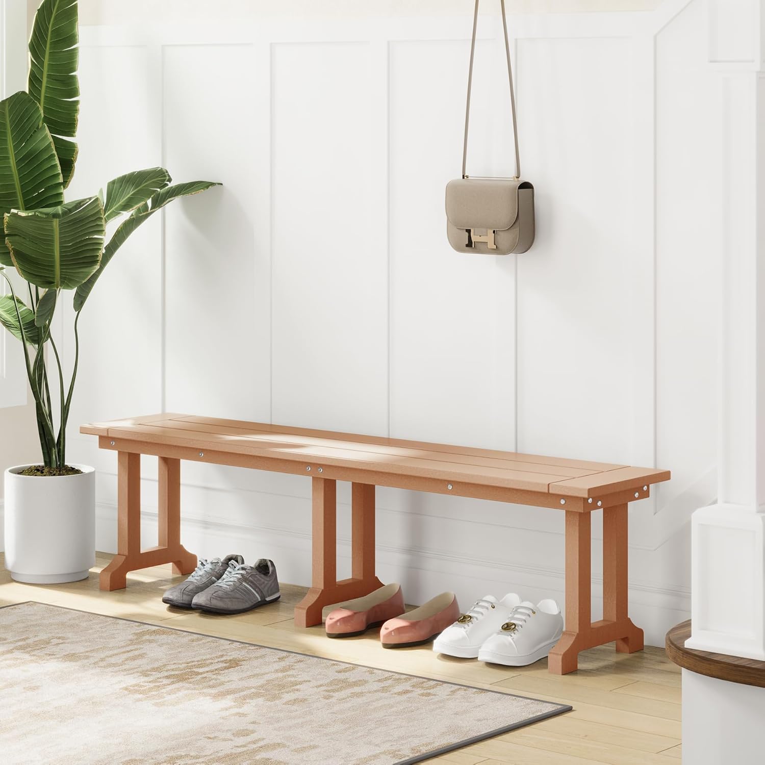 Outdoor Benches Weatherproof, Park Long Bench Poly Lumber Backless for Entryway Front Porch Garden Bench Seat for Patio, Teak