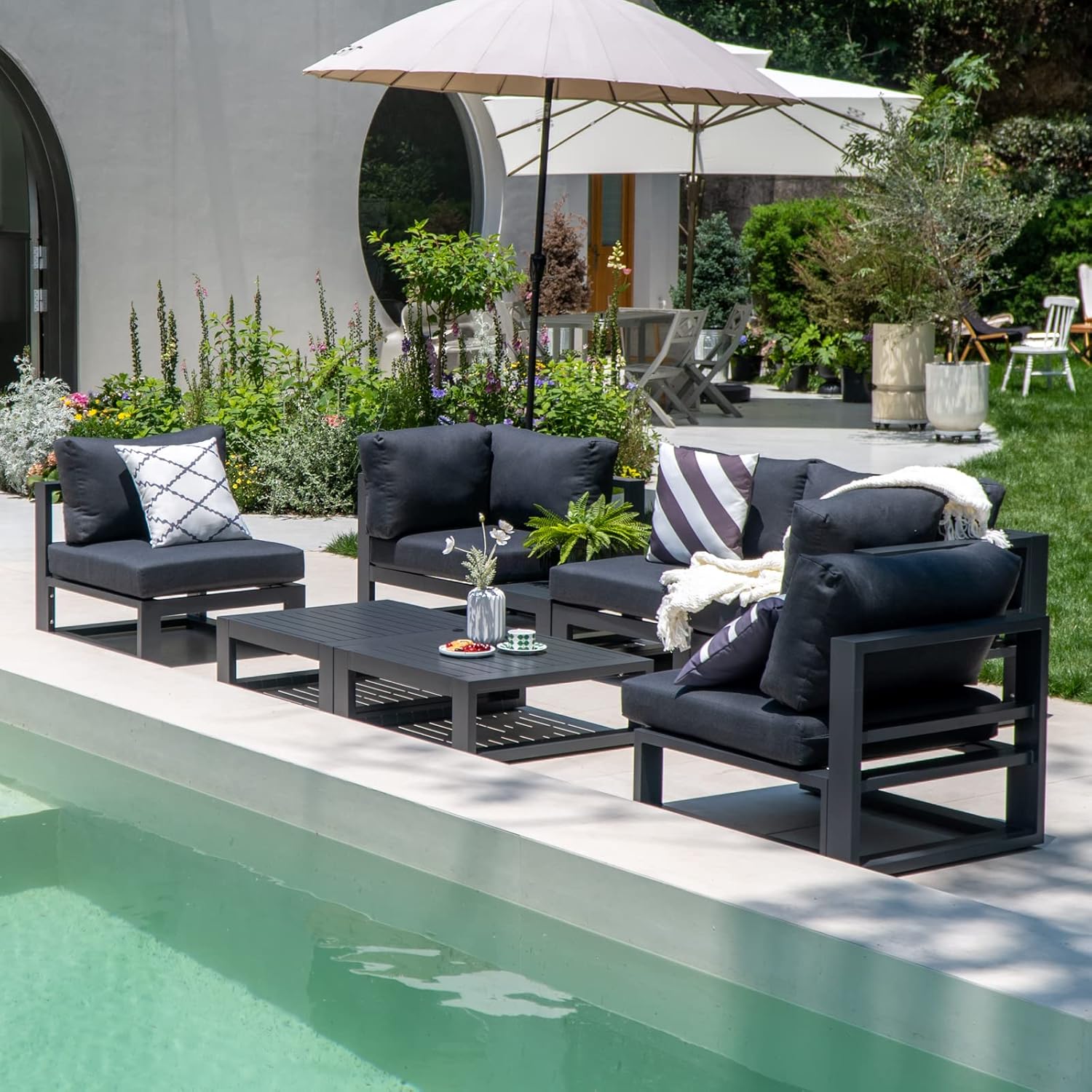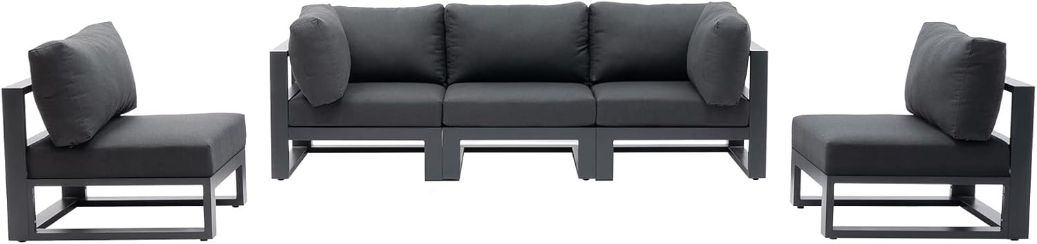 5 Pieces Outdoor Modular Sectional Set Aluminum Patio Conversation Sofa Sets, Armless Sofas with Dark Grey Cushions