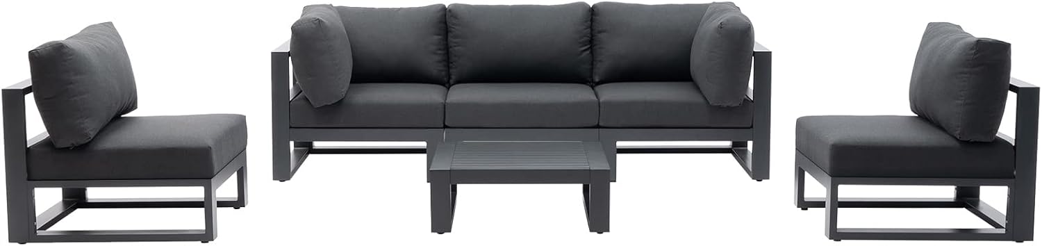 - HIGH-GRADE ALUMINUM FRAME: Made from extruded powder-coated aluminum tubing, the sturdy frames of this conversation set provide optimum durability and weather resistance for outdoor use. This aluminum conversation set is much lighter than the metal conversation set but not so light to be blown away in windy days. One person can easily lift a single sofa up and two persons can move the set around effortlessly. This aluminum conversation set is also easy to recycle at the end of its lifespan.