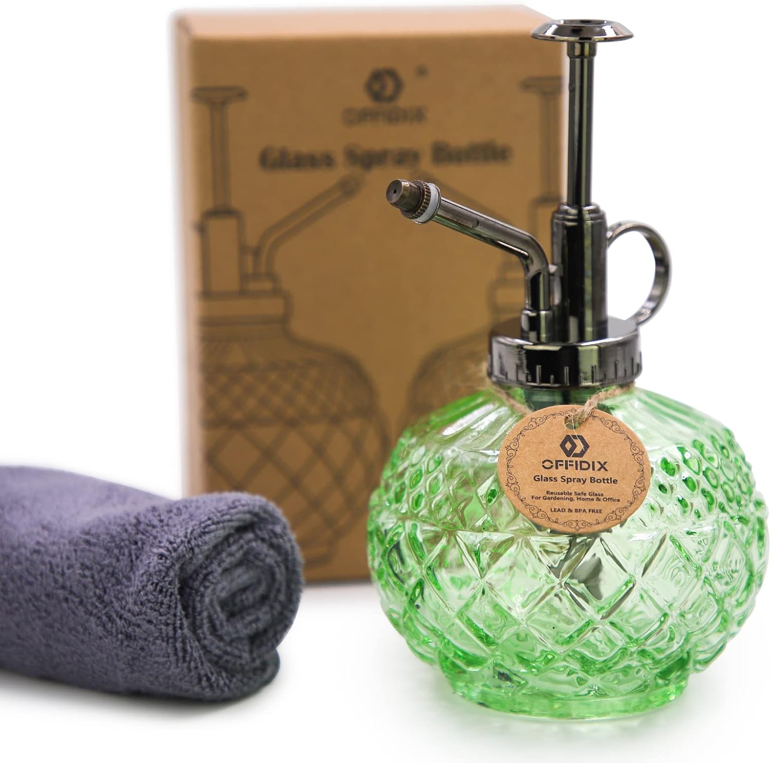 OFFIDIX Plant Mister, Mister Spray Bottle for Plants,Glass Spray Bottles with Plastic Bronze Plastic Top Pump,300ML Small Watering Can for Gardening, Cleaning (Light Green)