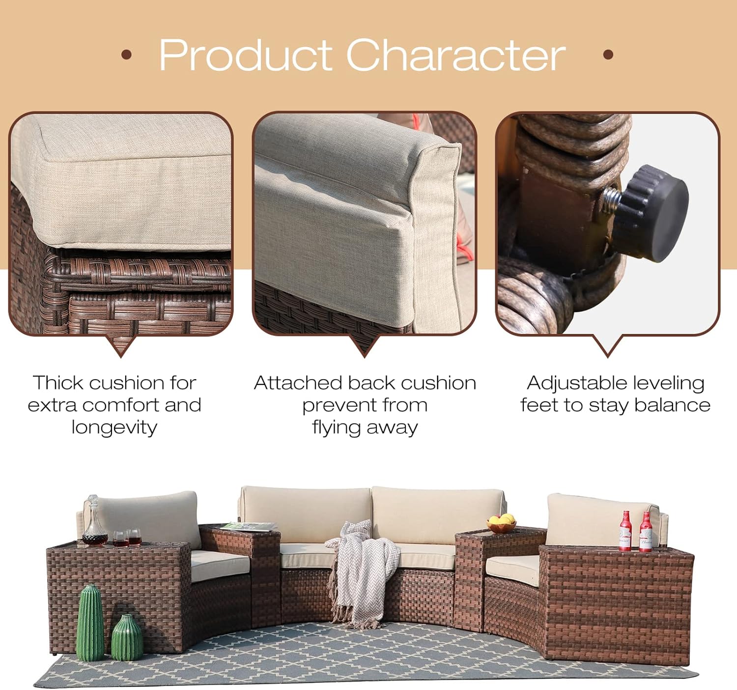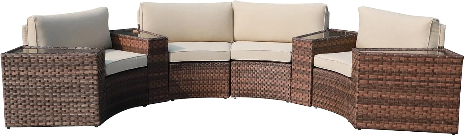 - WIDE APPLICATIONS - Our half-moon sofa set is a good choice for patio, backyard, balcony, poolside, garden and other suitable space, which perfect for indoor & outdoor using and meet the purpose of decorating the leisure places you need.