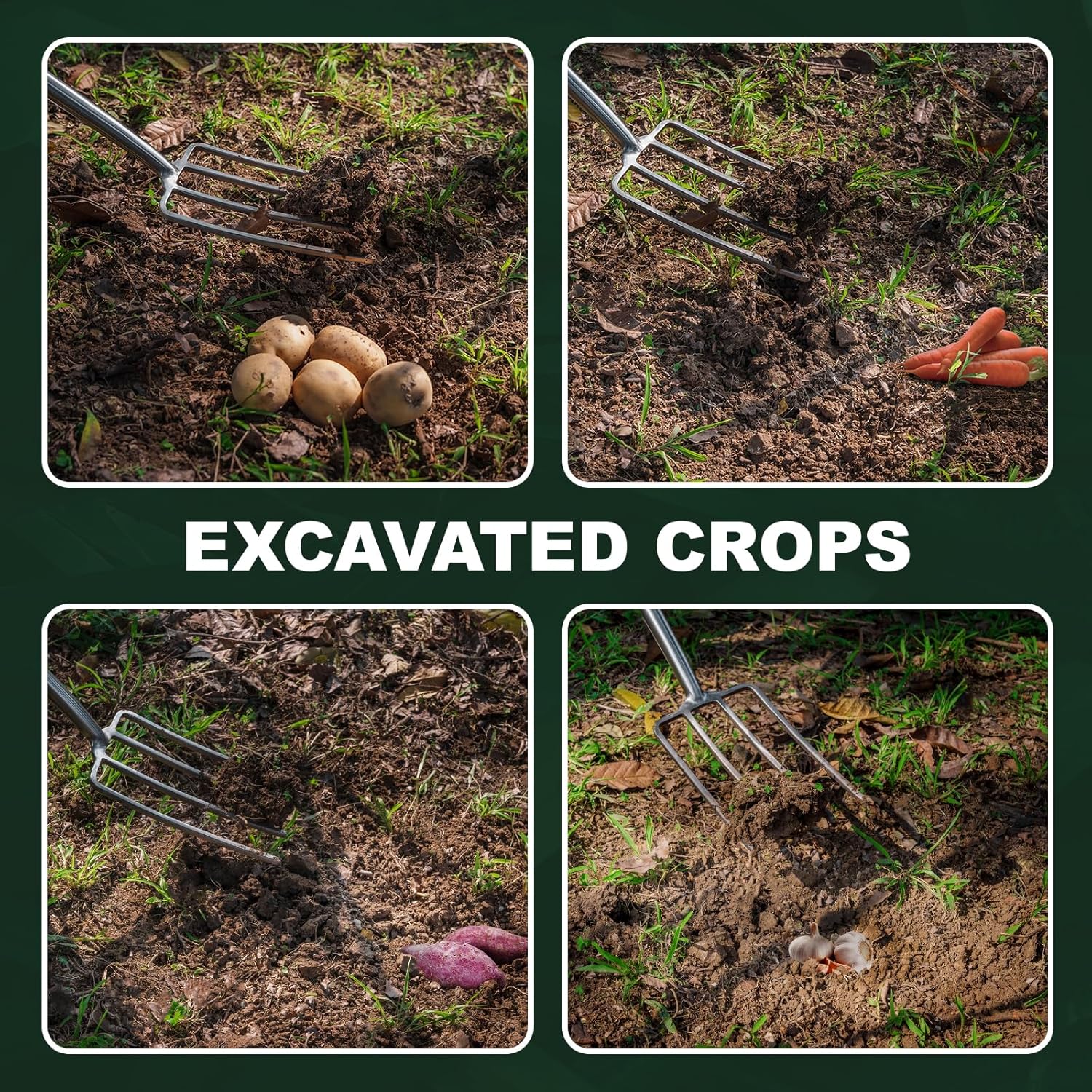 - HIGHLY FUNCTIONAL GARDEN TOOL - Eadwiella digging fork is a great way to loosen the soil in preparation for digging. It is also great for working organic material, fertilizer, or compost into your garden beds. It is amazing for getting root vegetables up to the surface to be harvested. They’re great for turning your compost pile. It is nearly a requirement for anyone with a serious vegetable garden.