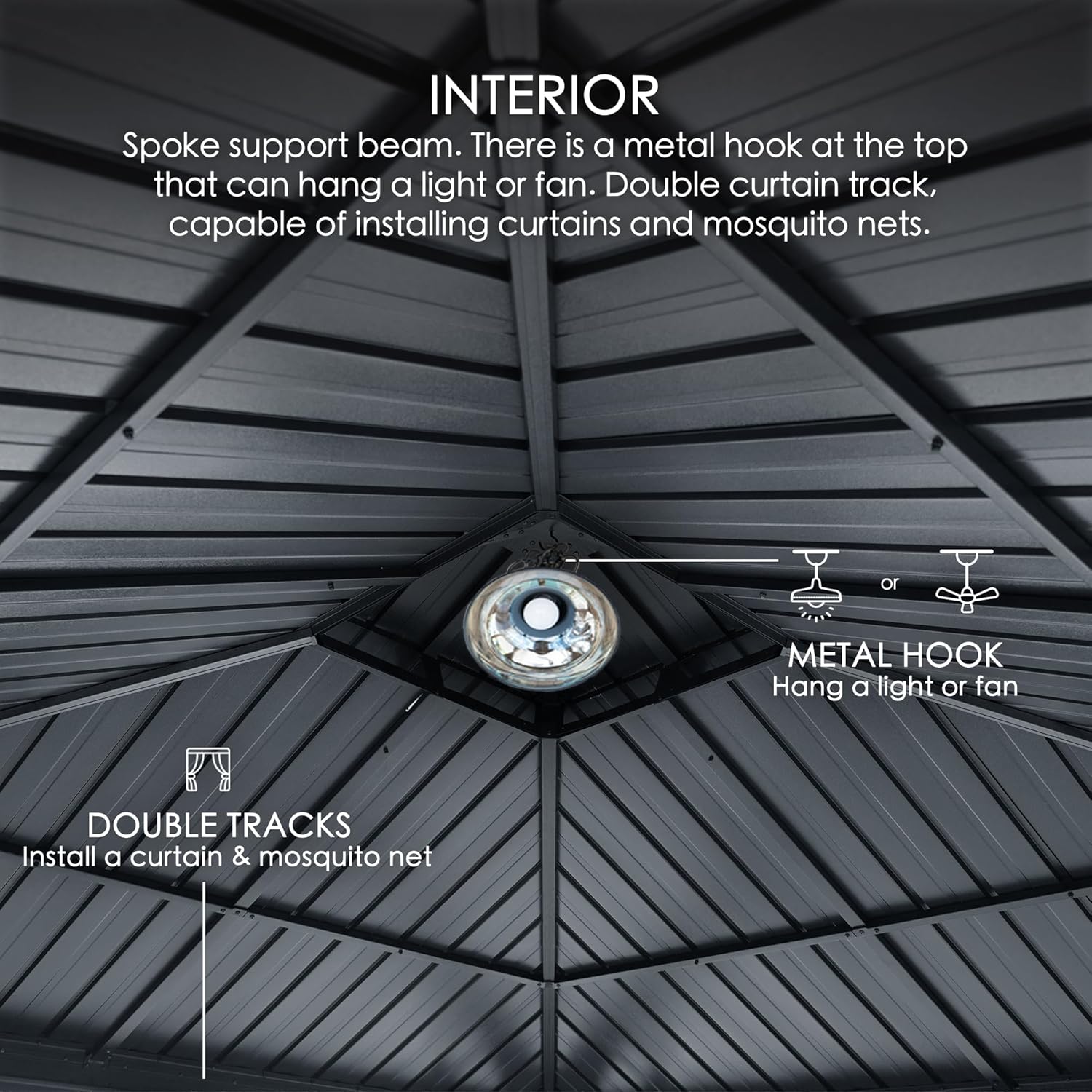 - ✅Two hooks have been specially crafted to accommodate fans or lights, enhancing the ambiance of your gazebo and making it a comfortable and inviting space.