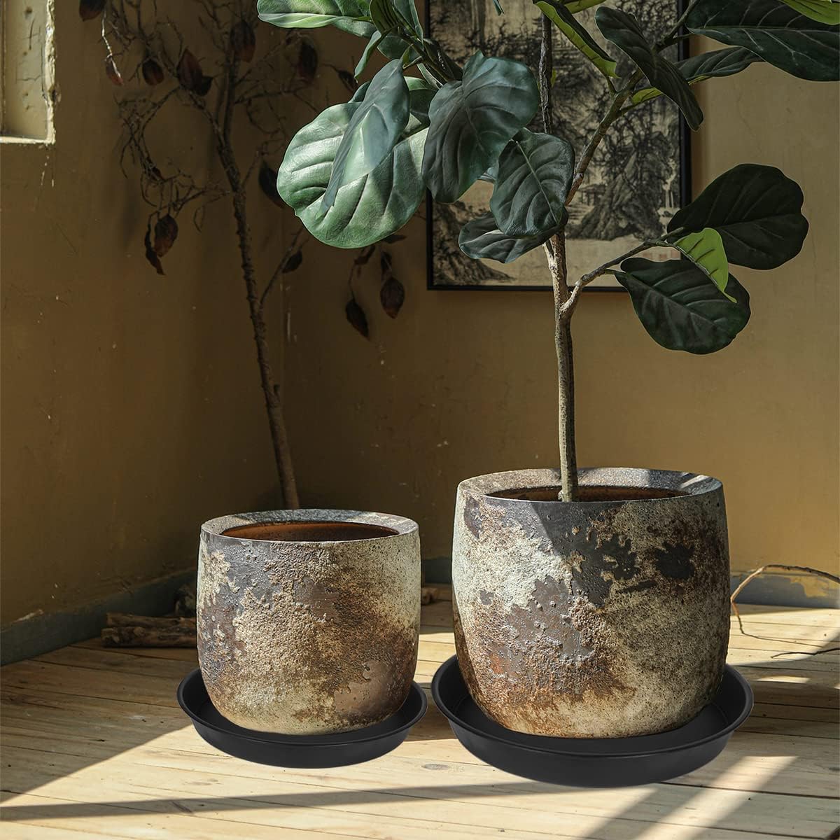 - 【PlANT SAUCER USE】These 16 17 inch plant saucers catches water overflow from flower pots and keeps your furniture and stains free. No fear of leakage from flower pots. Dark brown appearance will not affect any color matching with planters, plant water saucers and plant drip tray for indoors outdoor.