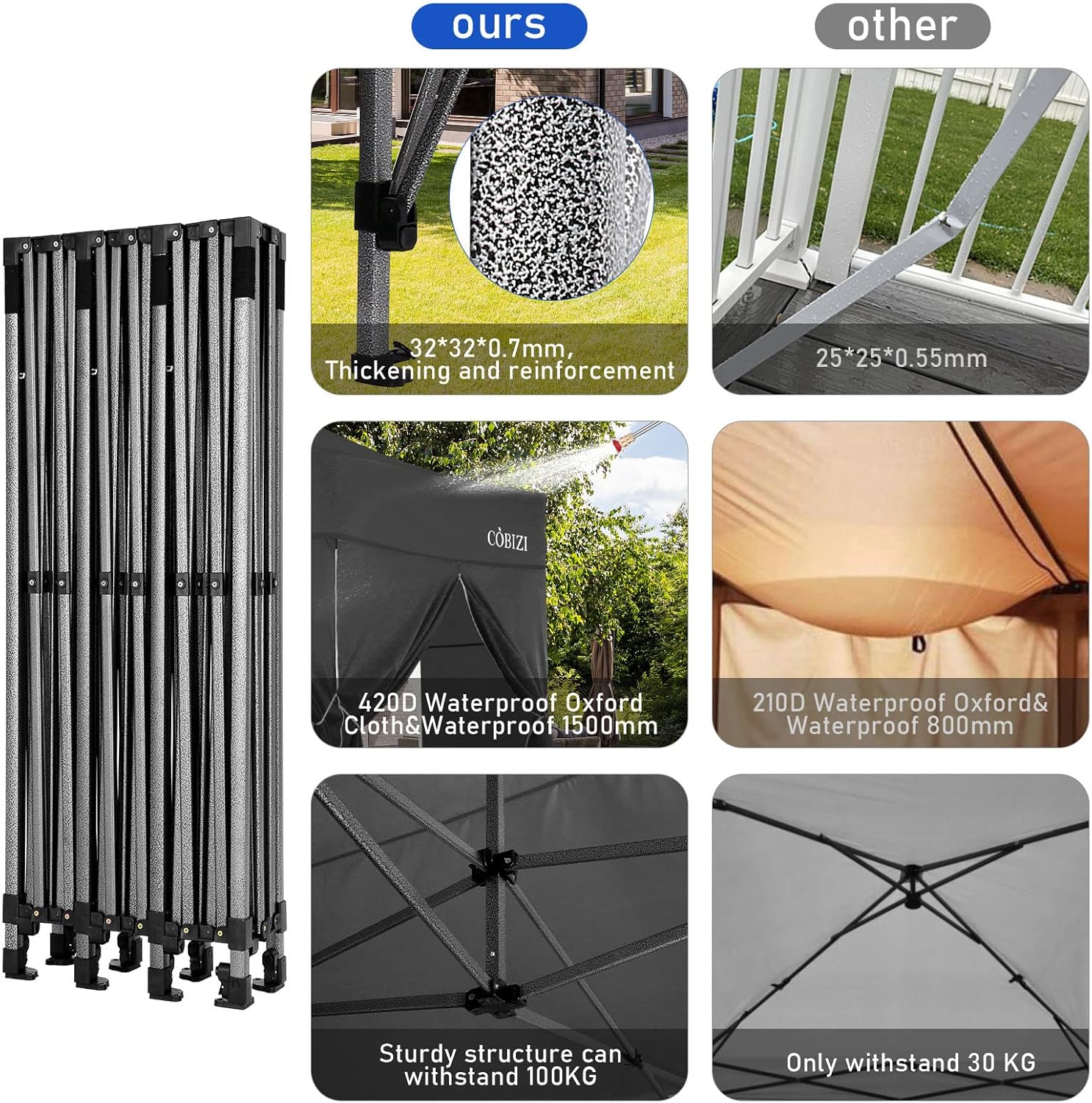 COBIZI 10x30 Pop up Canopy Tent 10x30 Canopy with Sidewalls, Heavy Duty Party Tent Tents for Parties, Foldable UPF 50+ Waterproof Commercial Easy up Canopy with Roller Bag, Black(Windproof Upgraded)