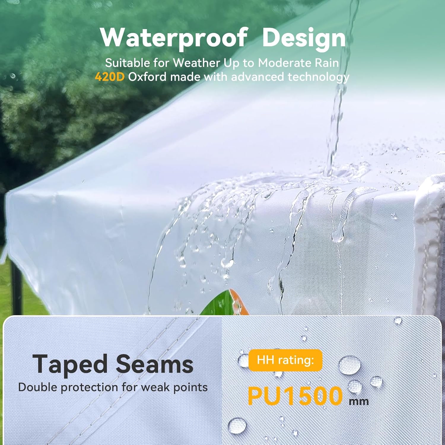 - 【Premium Canopy and Sidewalls】10x20 Party tent is made of 500D high quality Oxford with two layers of PU coating, UPF 50+, blocks 99% of the sun's rays. Seams are fully sealed to prevent water leakage, 100% waterproof. Waterproof pressure is 2.1psi, while the waterproof pressure of general tents is only 1.1psi. 6 PU coated removable sidewalls are connected by a whole strip of hook and loop fastener and zipper for tying frame top and legs.