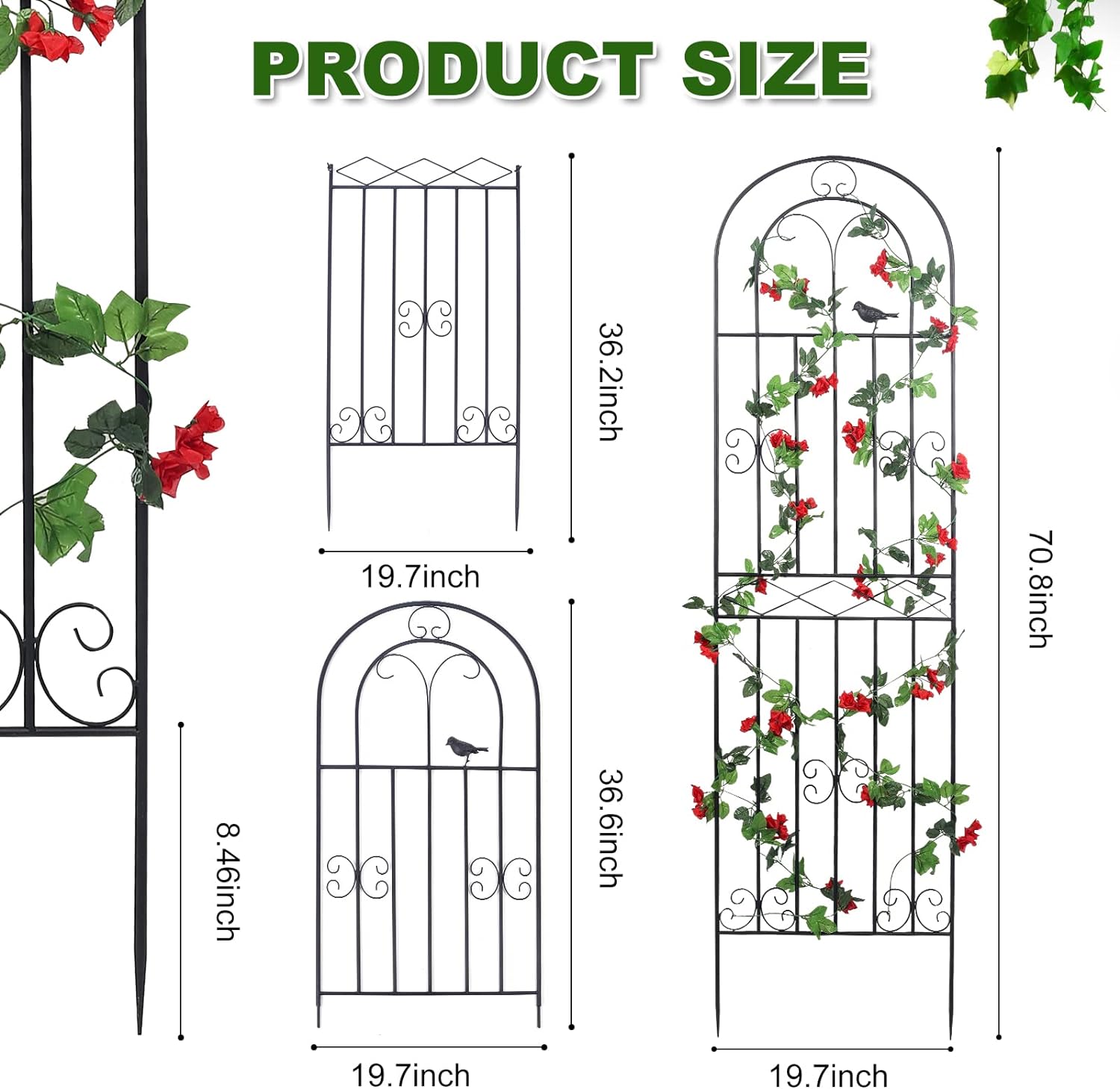 - 【Rustproof Material】 The decorative trellis is made of thicker metal iron and black powder coated finish. Rust and weather resistant. The 8.46 inch ground spike inserts into the ground and add stability to the trellises.