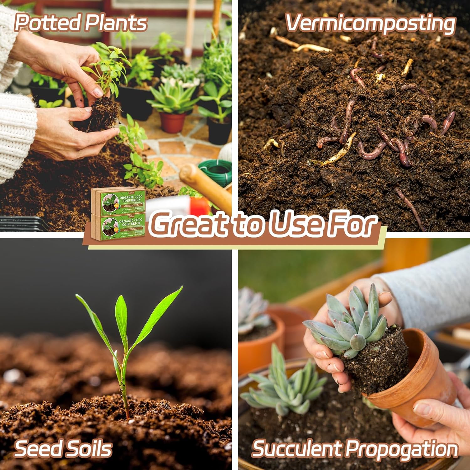 - Wide Application: For worms, garden and compost. Our coco bricks substrate works perfectly for seed germination; seedling nursery; potting mixes; micro greens; raised garden beds; landscaping and both indoor and outdoor gardening. These fluffy and brown coco coir pith soil blocks also perfect for vermicomposting and reptile bedding