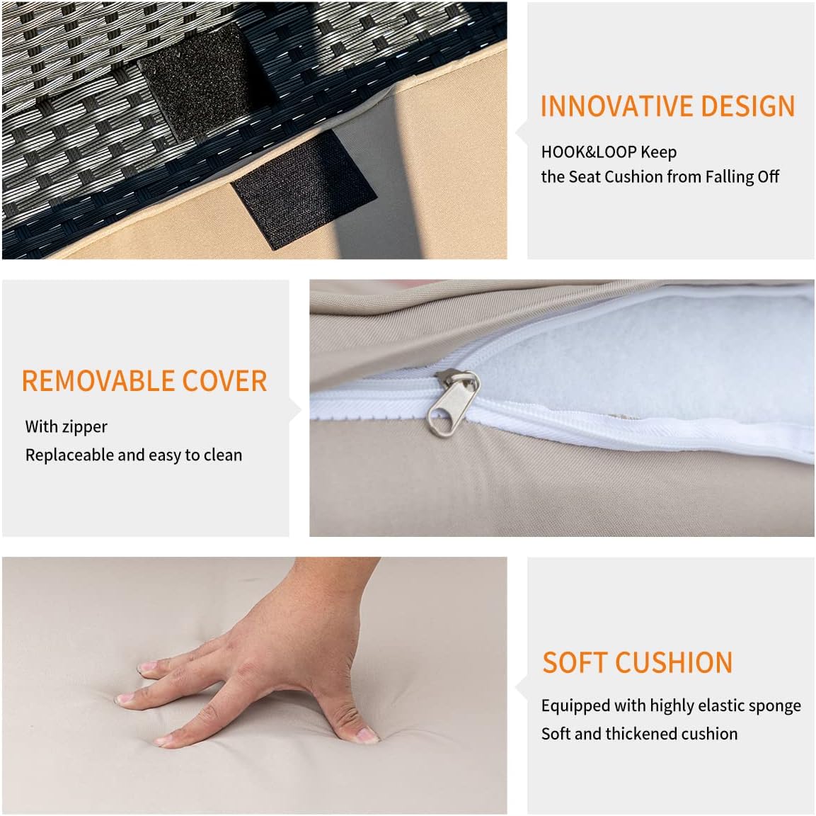 - [Ultra-Comfortable & Sturdy] The chairs are provided with thick cushions for ultra comfortability and the slightly sloping backrest provides you with support on the back. Further, the patio furniture is made with a rust-proof steel frame and PE rattan wicker, for a long-lasting experience.